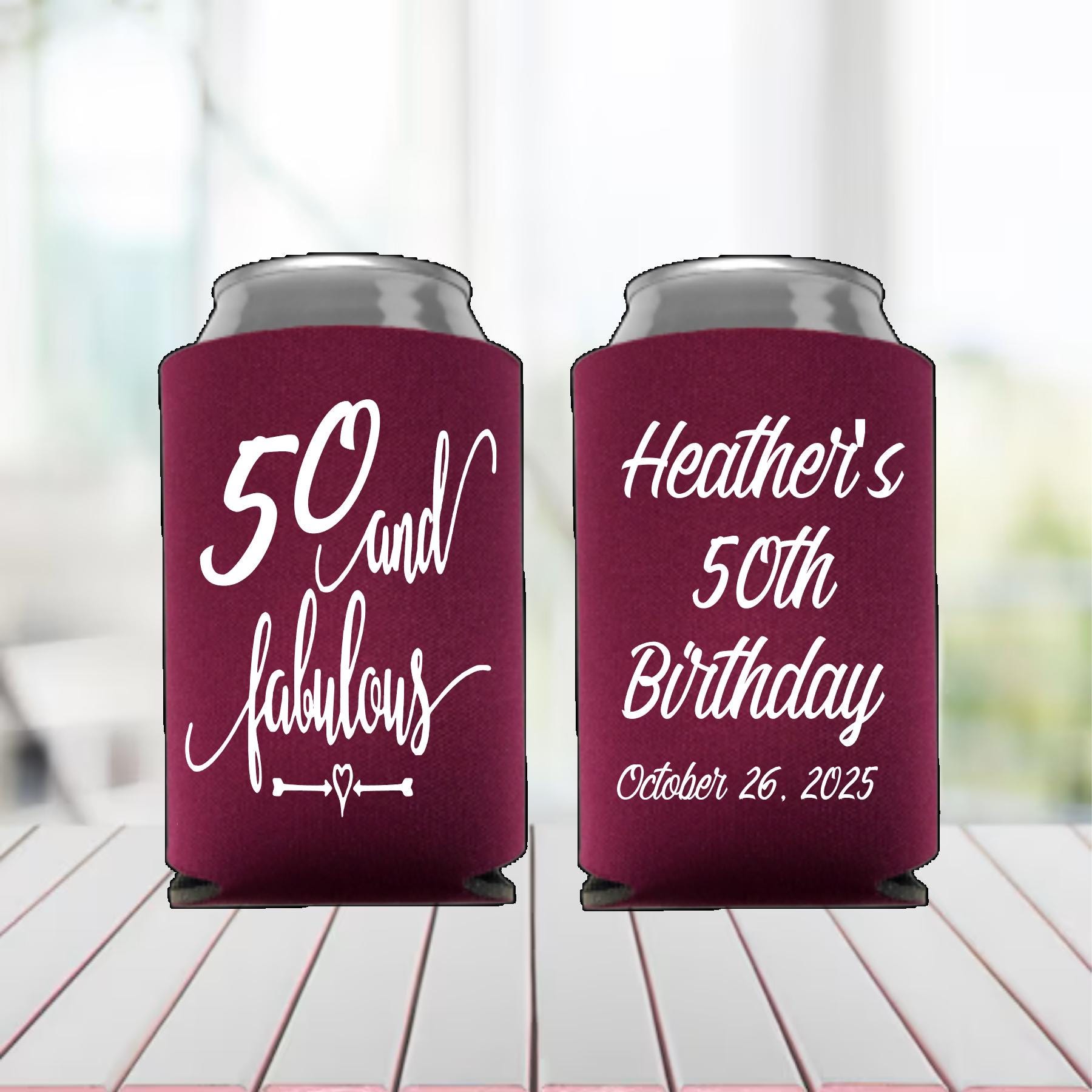 50th Birthday Can Coolers 50 and Fabulous Cheers to 50 Years Birthday Party Can Coolers Can Coolers for 50th Birthday Favor Birthday Bash