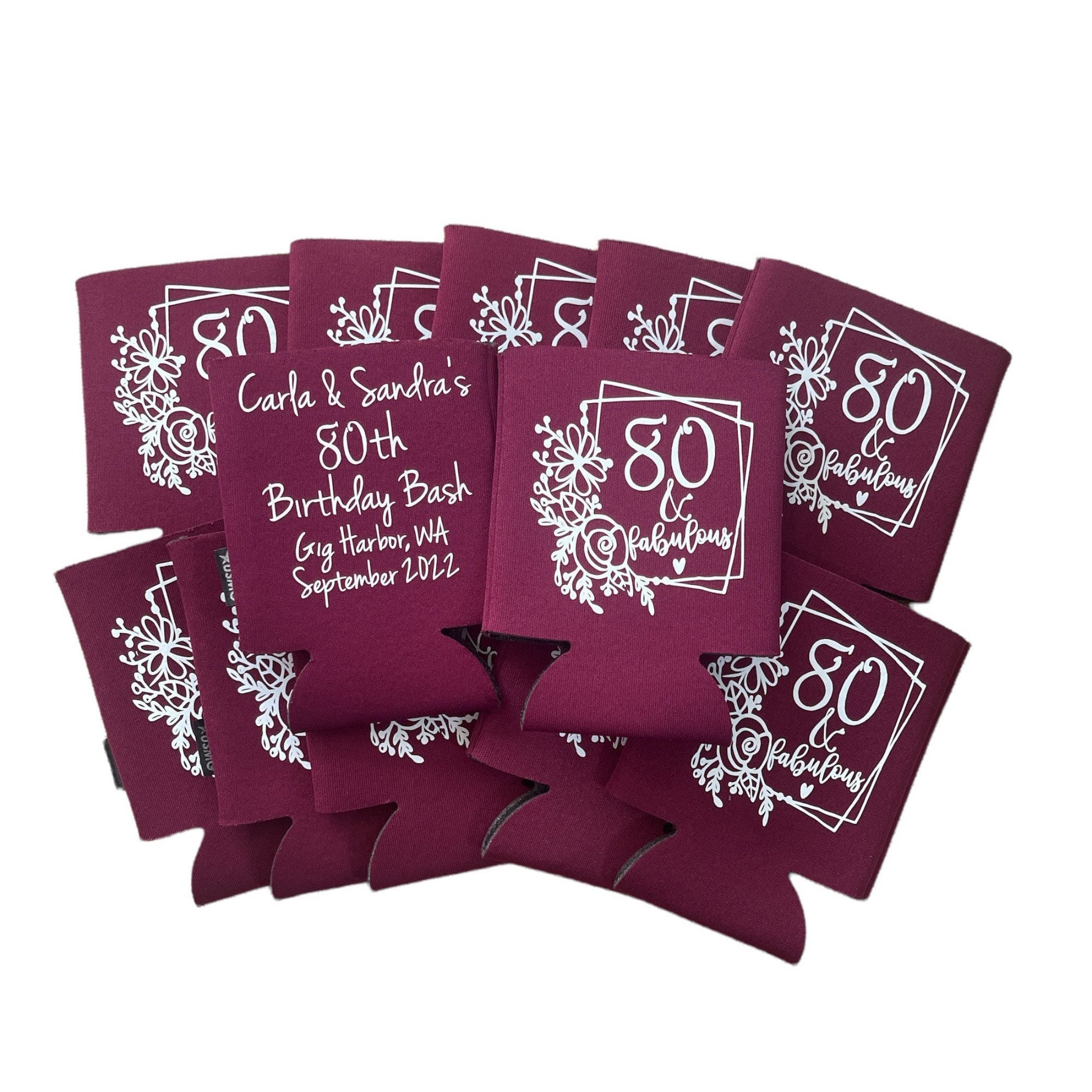 80 and Fabulous Birthday Can Coolers 80th Birthday Favors Cheers to 80 Years Birthday Party Can Coolers Can Coolers for 80th Party Favor