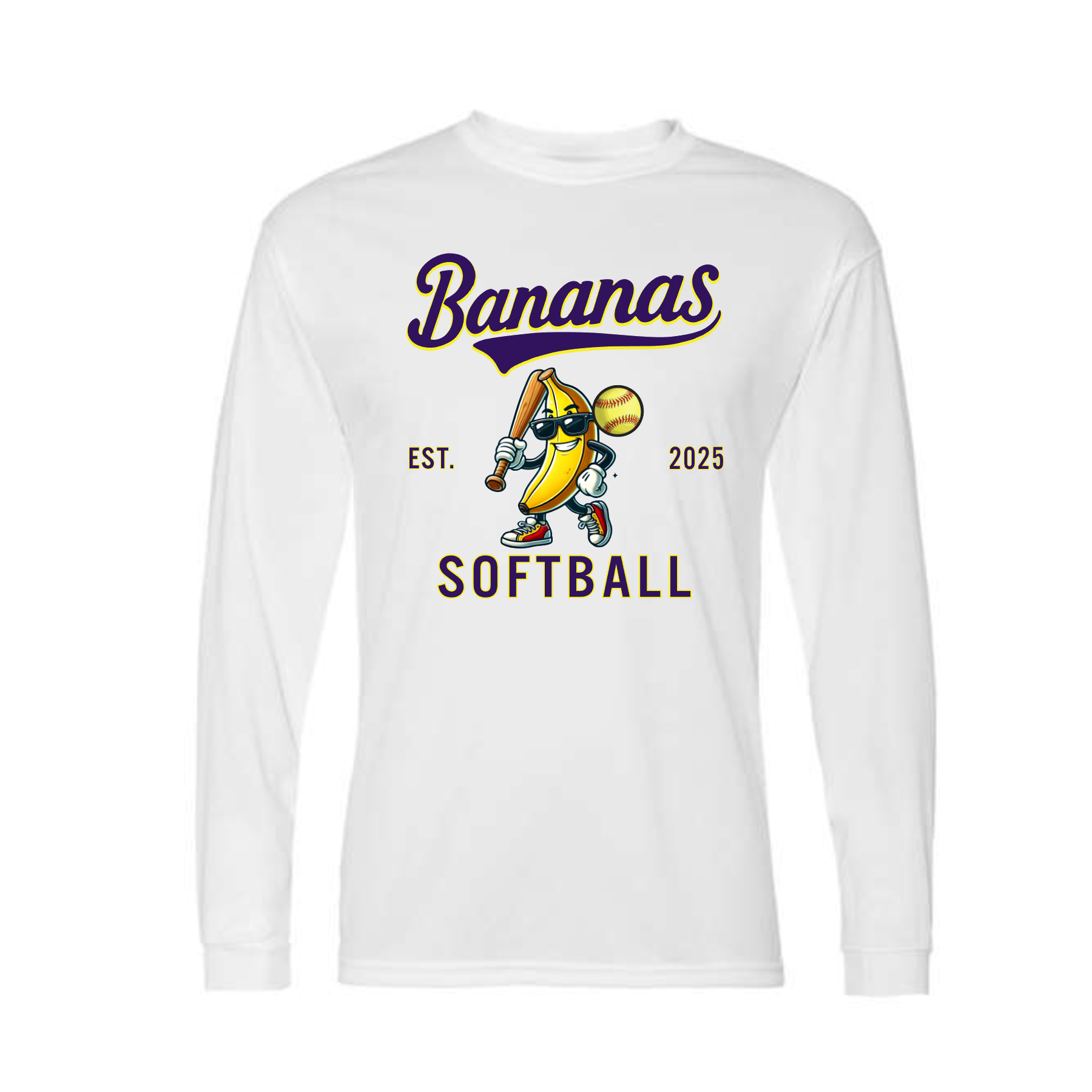 Be the coolest Fan on the block in our White Long Sleeve Bananas Softball Top. Perfect for representing your favorite team!