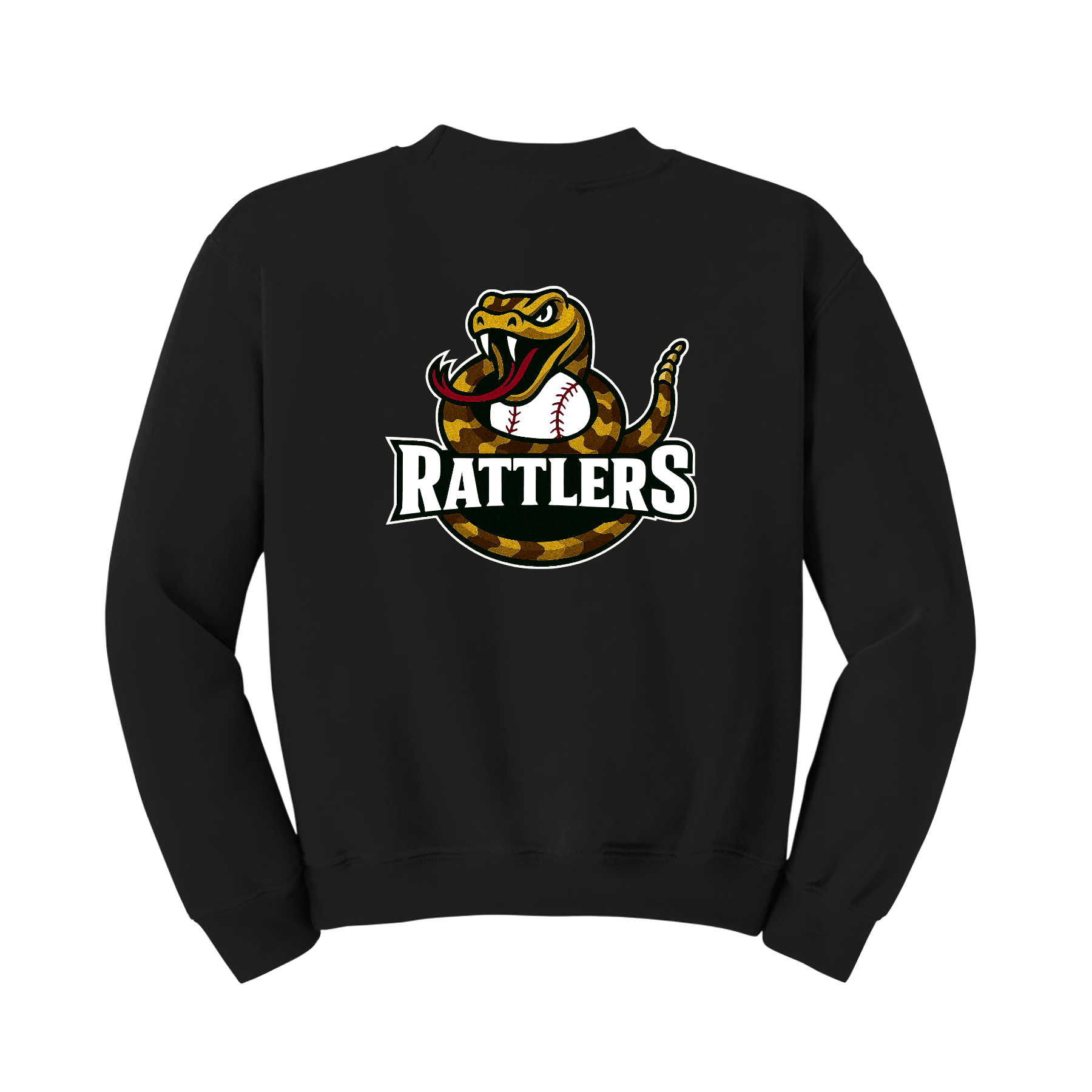 Black Rattlers Baseball Logo'd Fleece, Rattlers Sweatshirt, Black Crewneck Sweatshirt