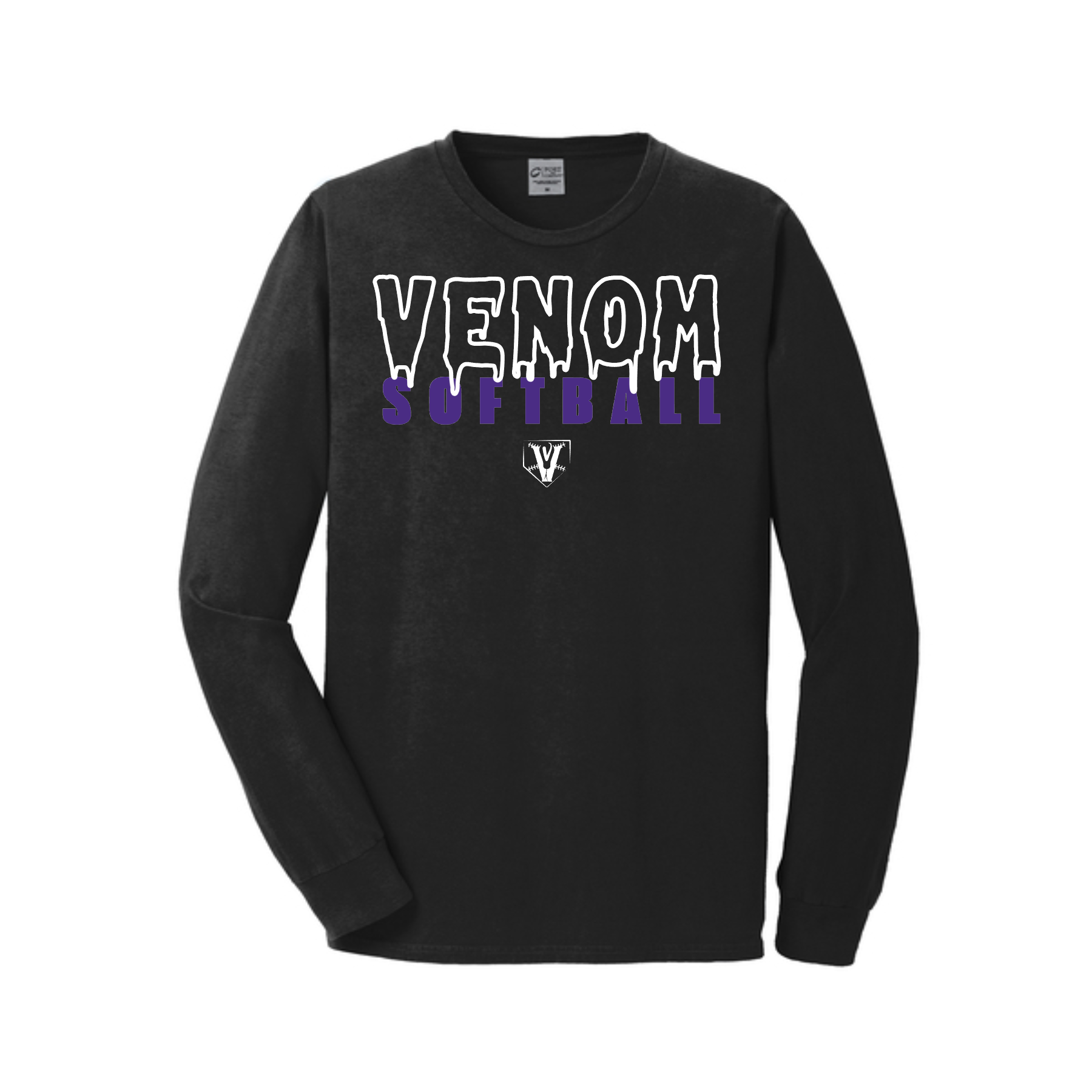 Black Venom Drip Softball Long Sleeve Shirt, Venom Fastpitch Tee, Venom Softball Spiritwear