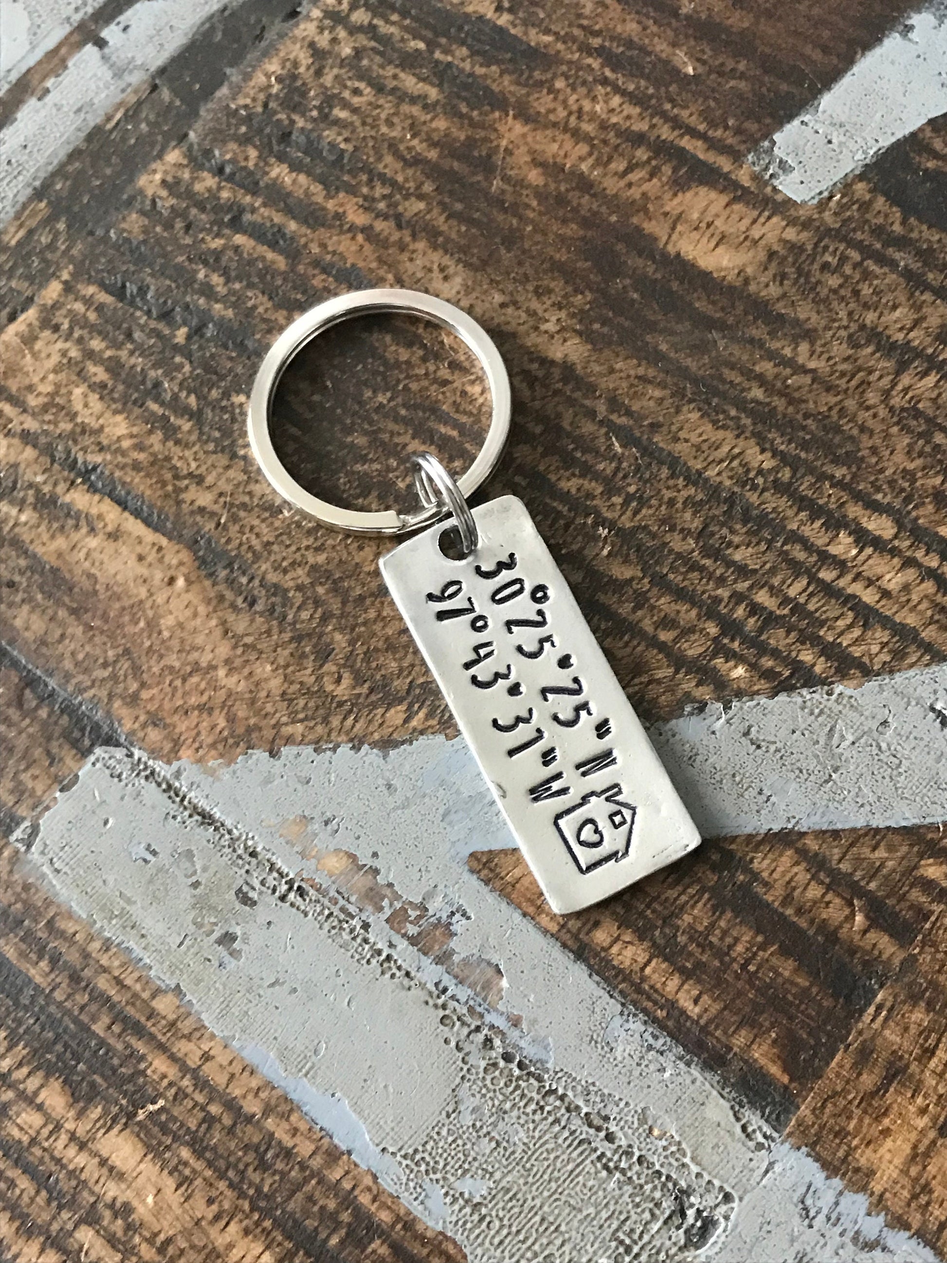 Coordinates Keychain Realtor Gift New Home Keychain Client Gift Thank you Gift Realtor Keychain Hand Stamped Keychain New Homeowner Gift