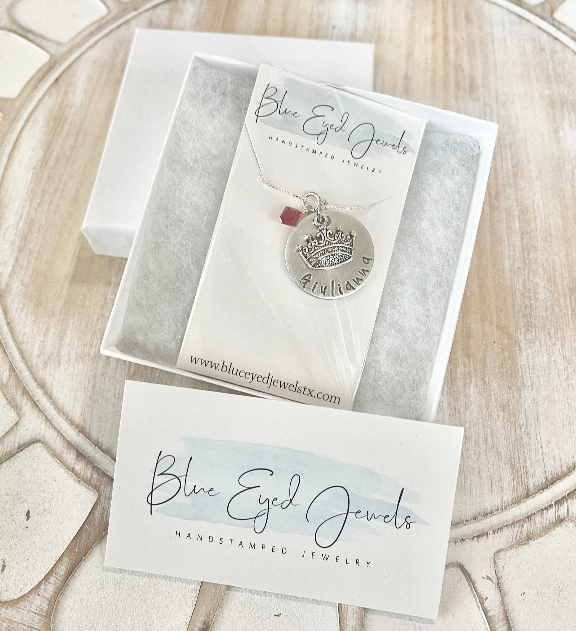 Princess necklace makes a perfect party favor or little girls birthday.Comes with a silver crown charm and Swarvoski crystal of choice.