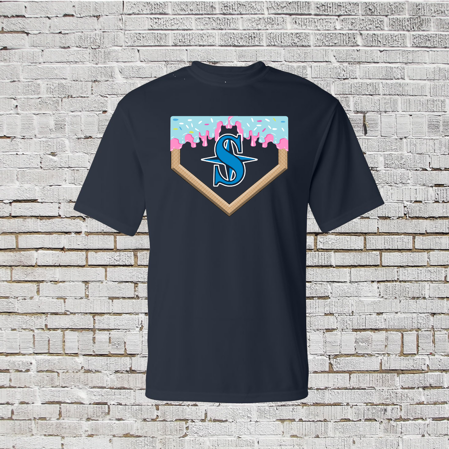 Custom Baseball Shirt, Baseball Drip Tshirt Baseball Birthday Shirt Team Logo Ice Cream Shirt Navy Ice Cream Shirt