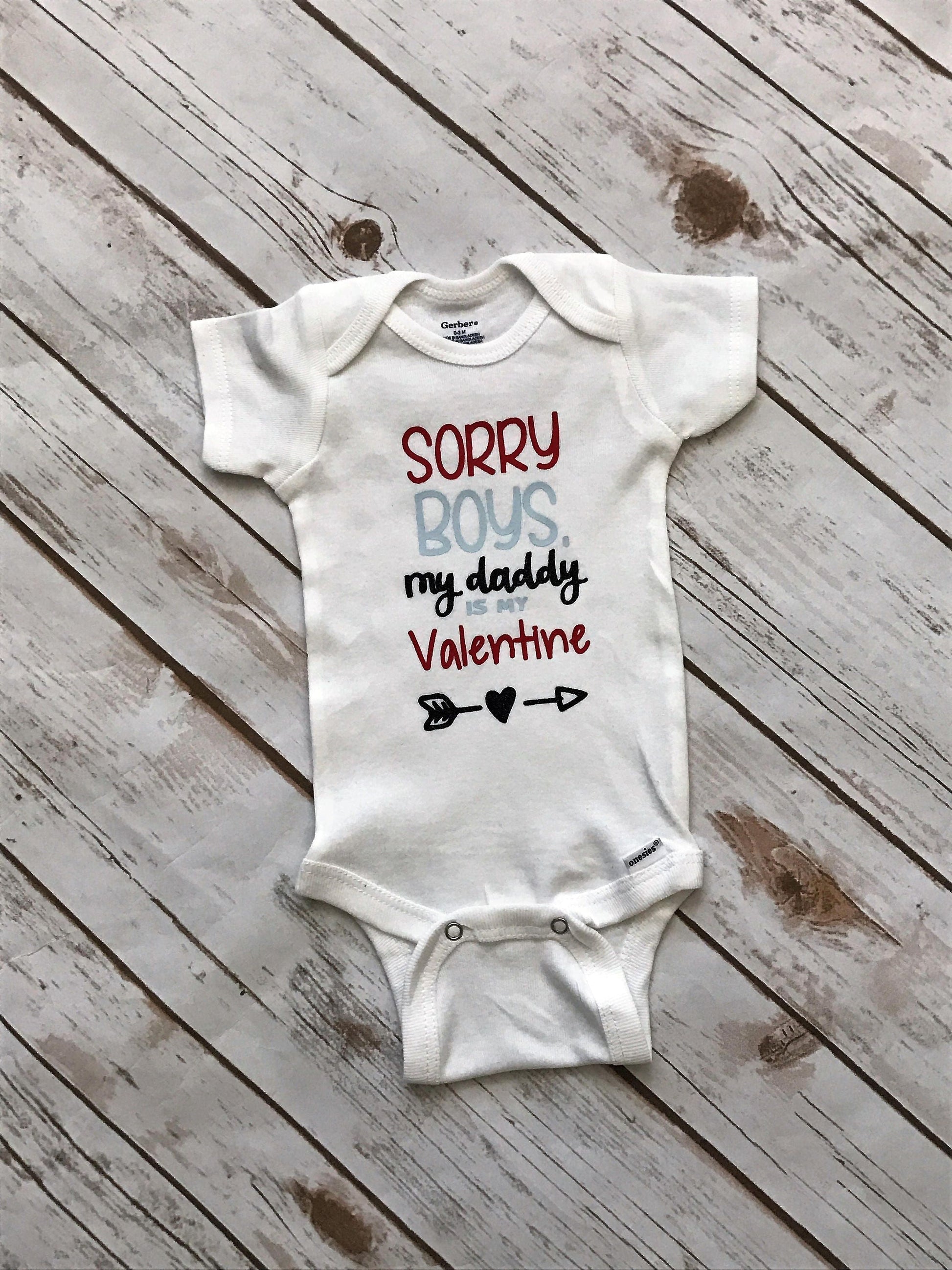 *White Cotton Onesie in size of choice with "Sorry Boys my Daddy is my Valentine"