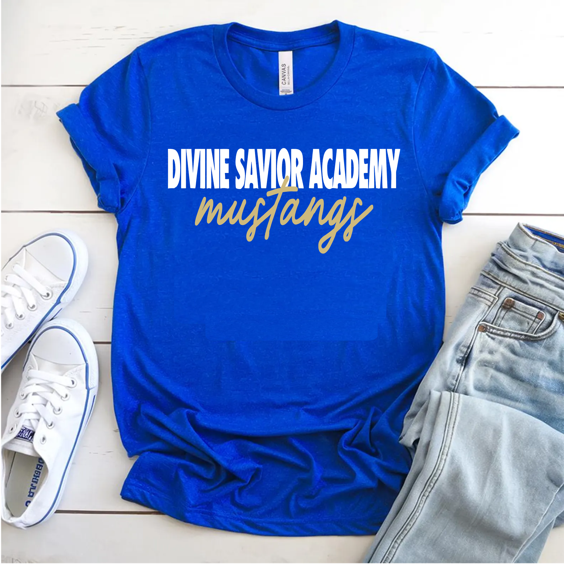 Divine Saviors Academy Tee, DSA Mustangs Shirt, Royal Blue Divine Saviors Tee