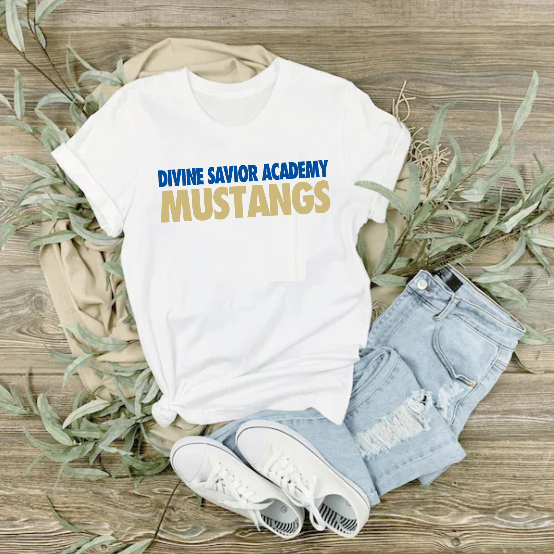 Divine Saviors Academy Tee, DSA Mustangs Shirt, White Divine Saviors Tee
