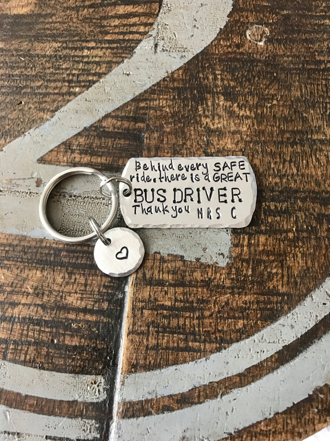 This Brushed Silver Keychain is handstamped and personalized for the AWESOME BUS DRIVER in your life. This is a perfect gift for your safe driver.