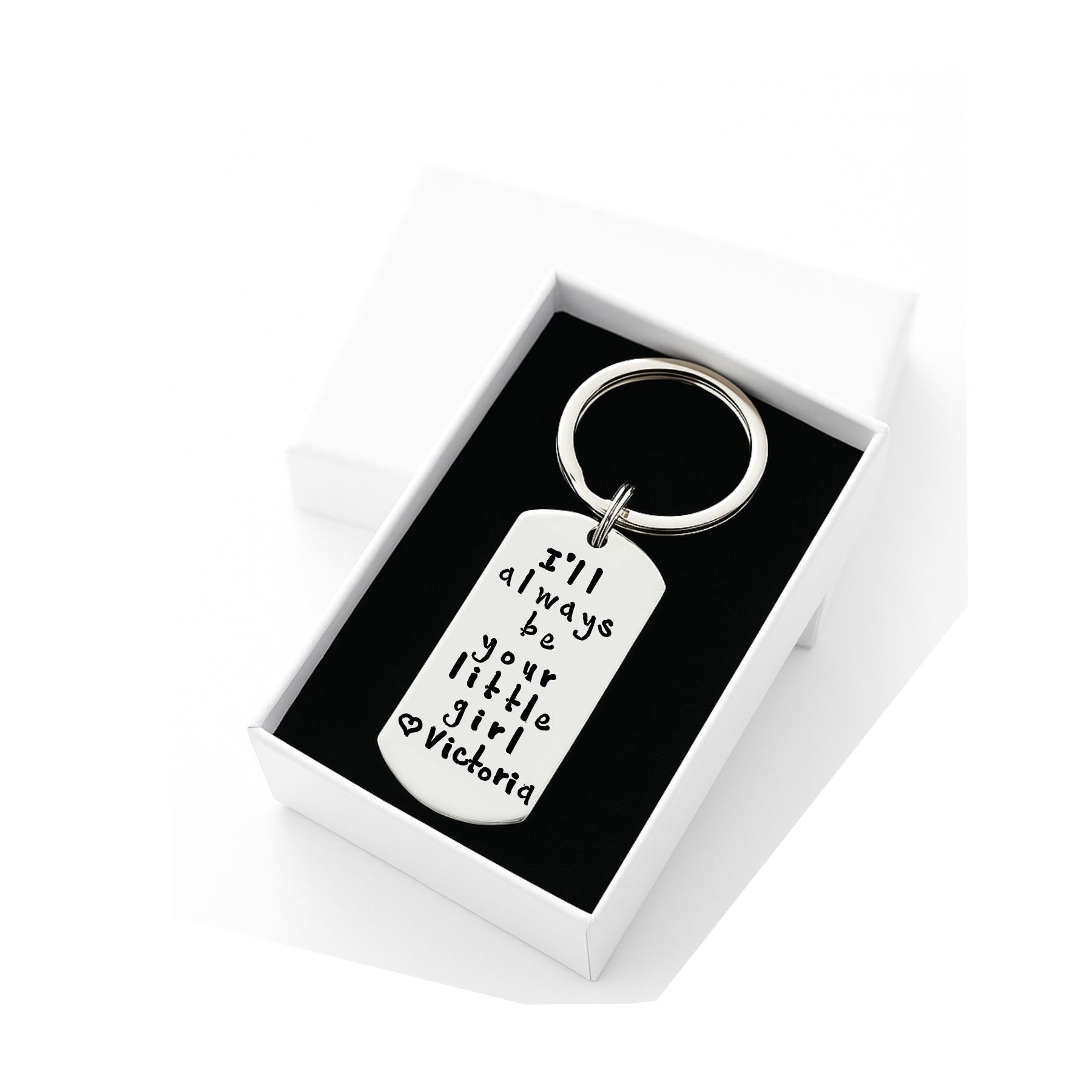 Each key chain is thoughtfully crafted with a sentimental message handstamped into durable aluminum—made to last just like your love for Dad.