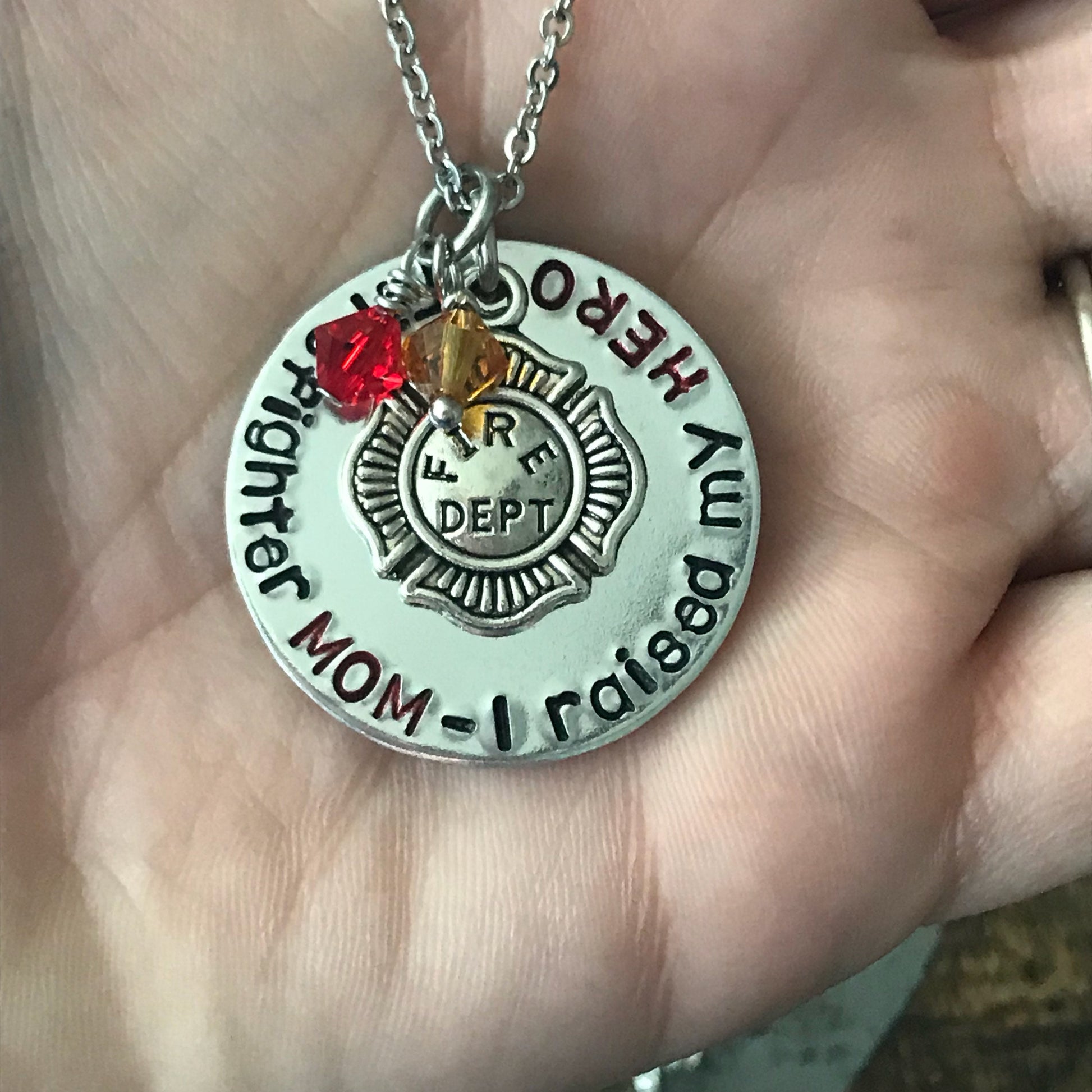 Firefighter Mom Necklace Firefighter Mom Jewelry I raised my HERO Personalized Necklace Firefighter Gift Firefighter Badge
