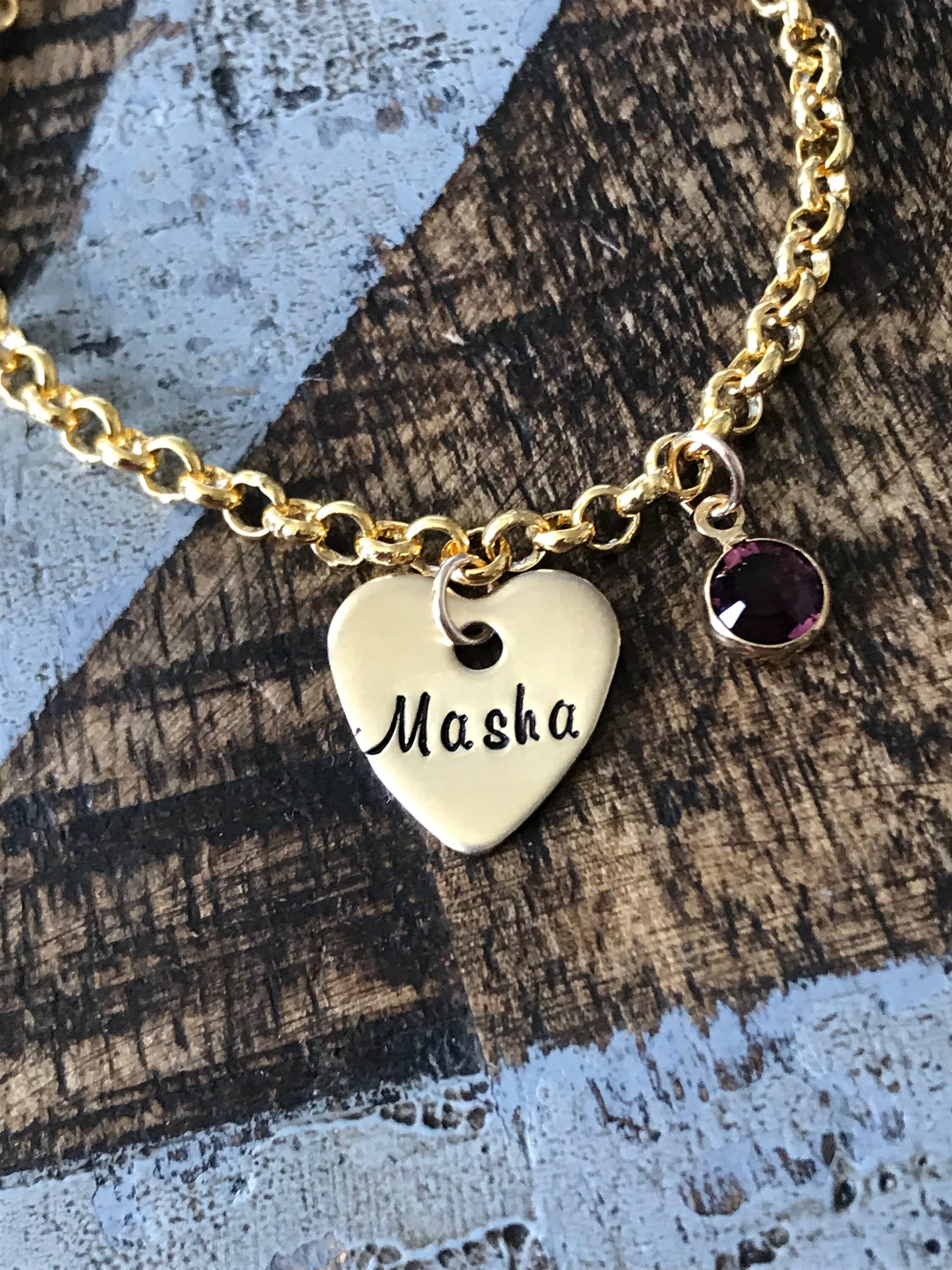 Gold Girls Charm Bracelet Handstamped Bracelet Heart Bracelet Personalized Bracelet Charm Bracelet Bracelet for Girl Birthstone Jewelry