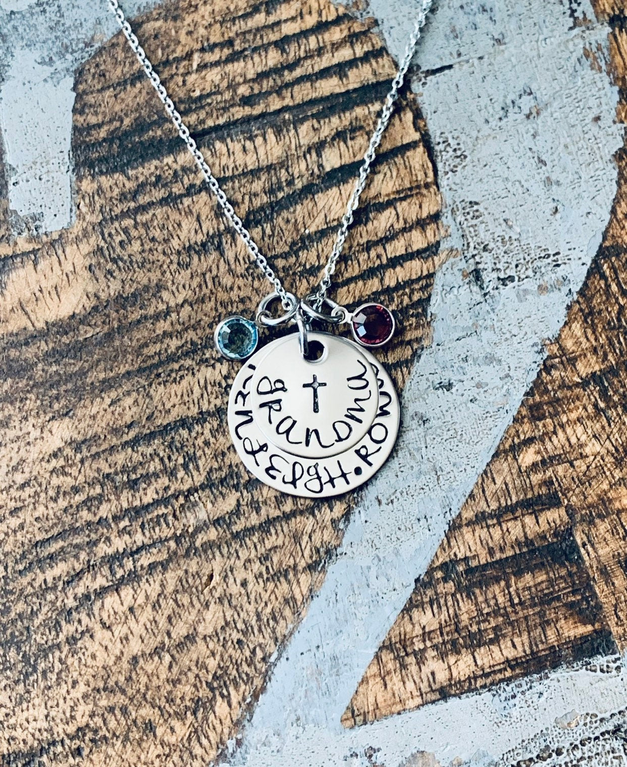 Grandma Necklace Cross Necklace Grandchild Necklace Personalized Necklace Personalized Jewelry Handstamped Necklace Birthstone Necklace