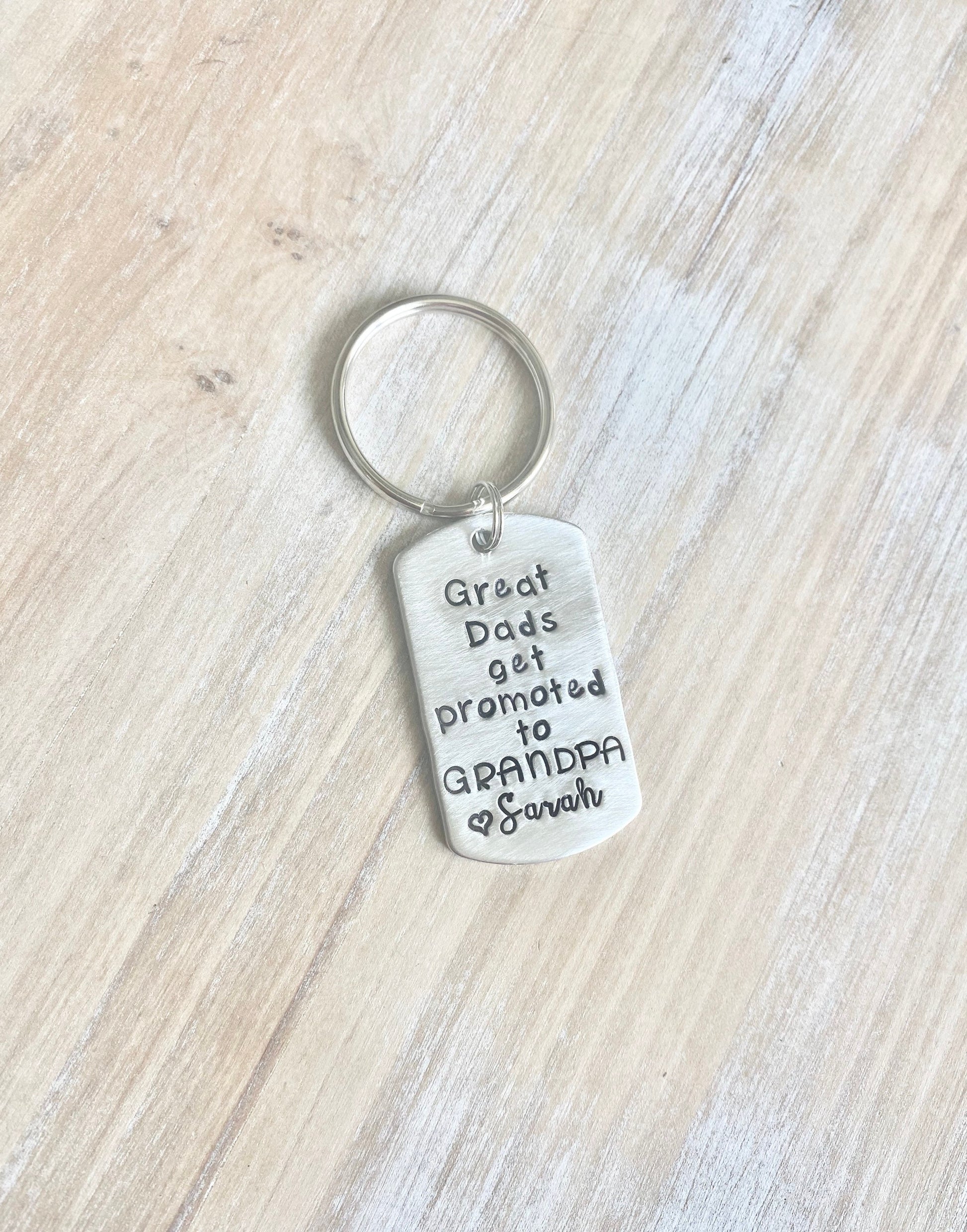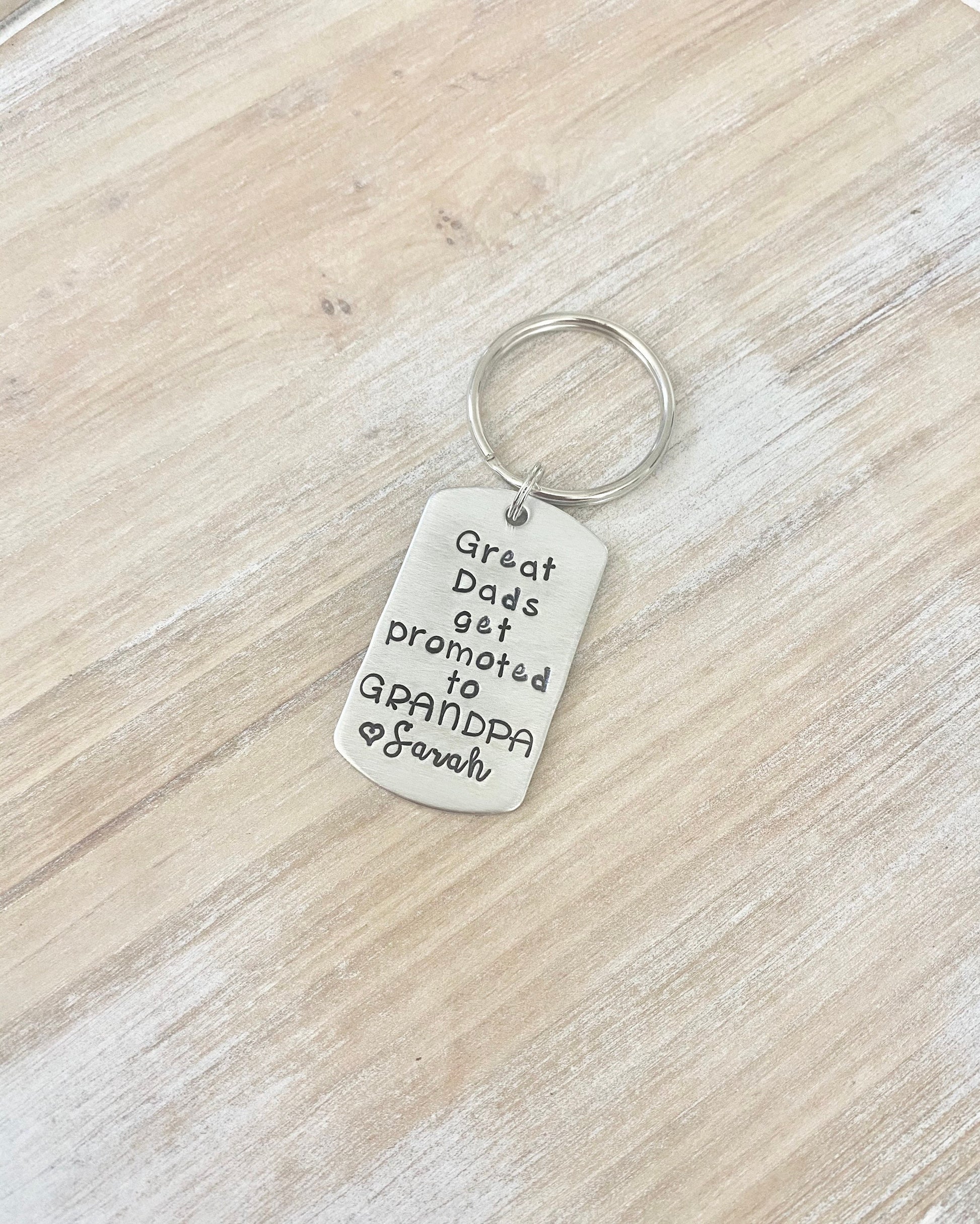 Great Dads Get Promoted to Grandpa Keychain Gift for New Dad Grandpa Keychain Handstamped Keychain Custom Keychain Dad Keychain Fathers Day