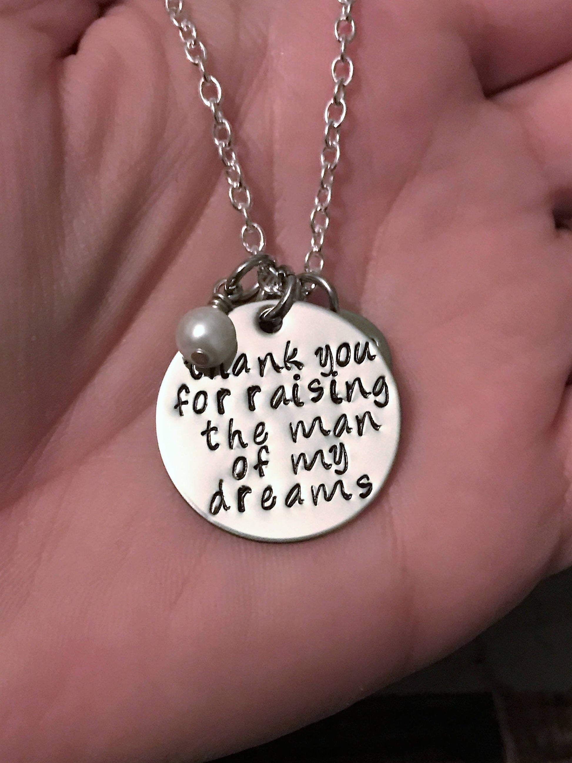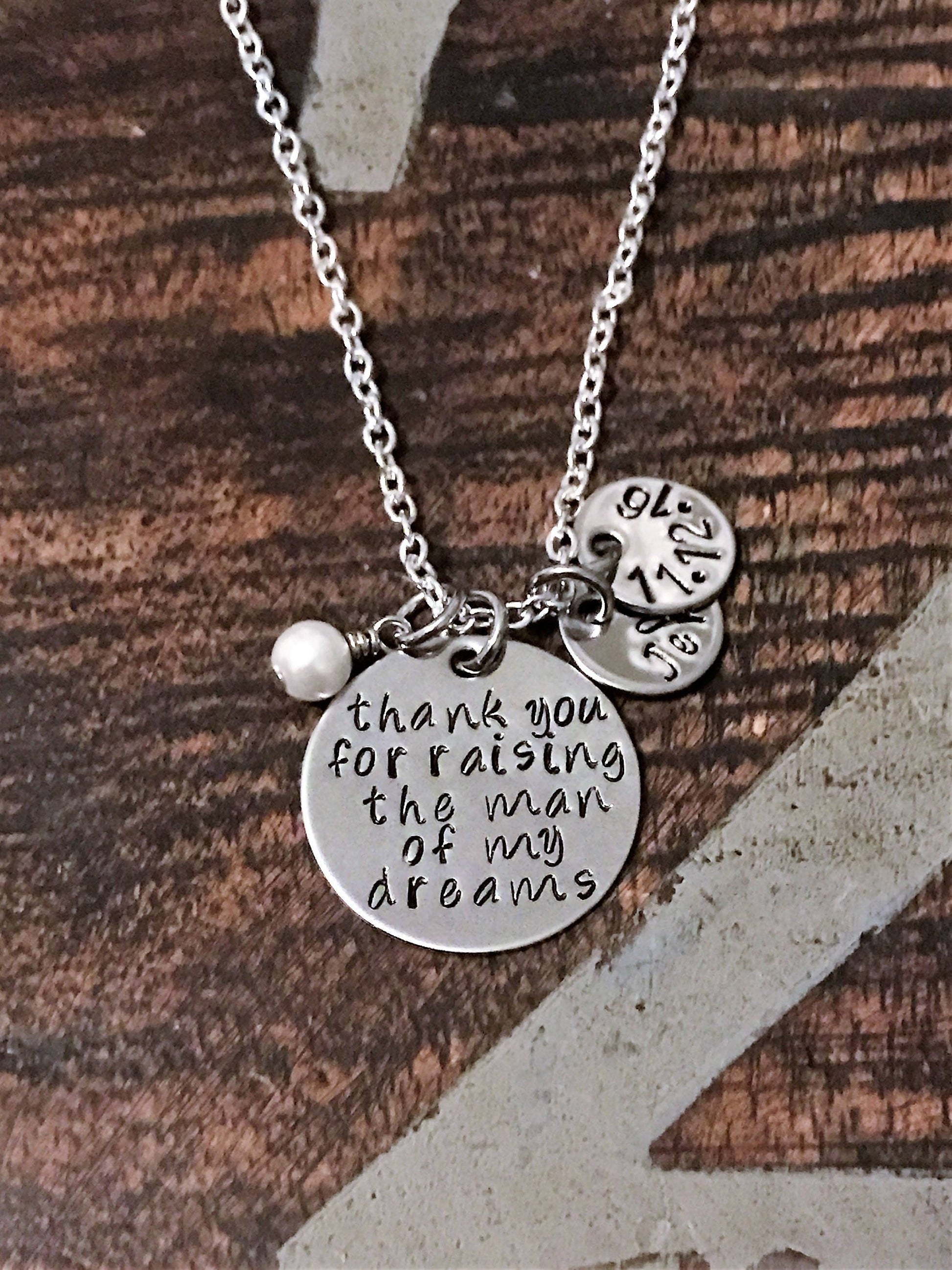 Hand Stamped Jewelry Thank you for Raising the Man/Woman of my Dreams Mother in Law Gift Handstamped Necklace Personalized Jewelry