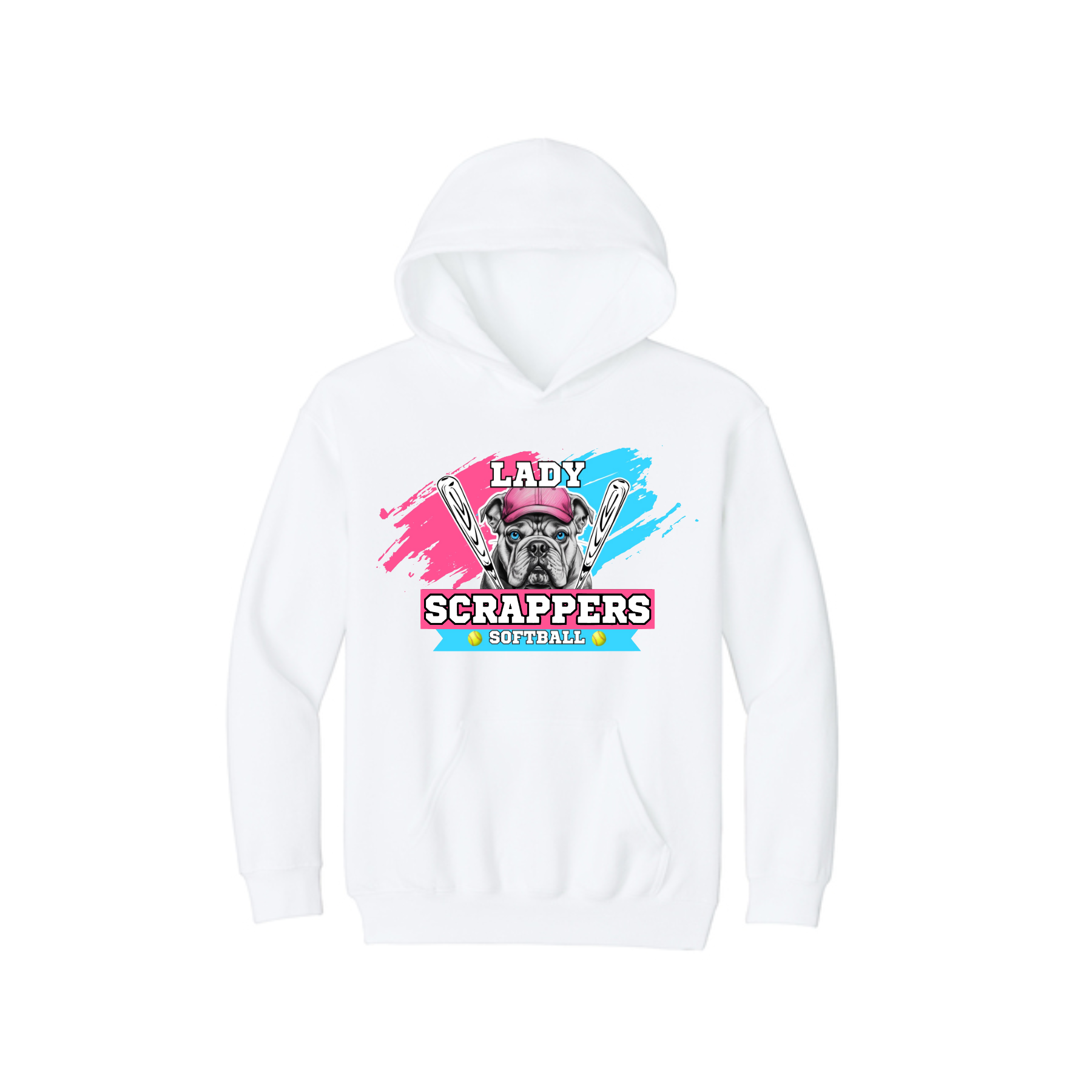 Lady Scrappers Hoodie, White Lady Scrappers Softball Hoodie, Scrappers Softball Sweatshirt