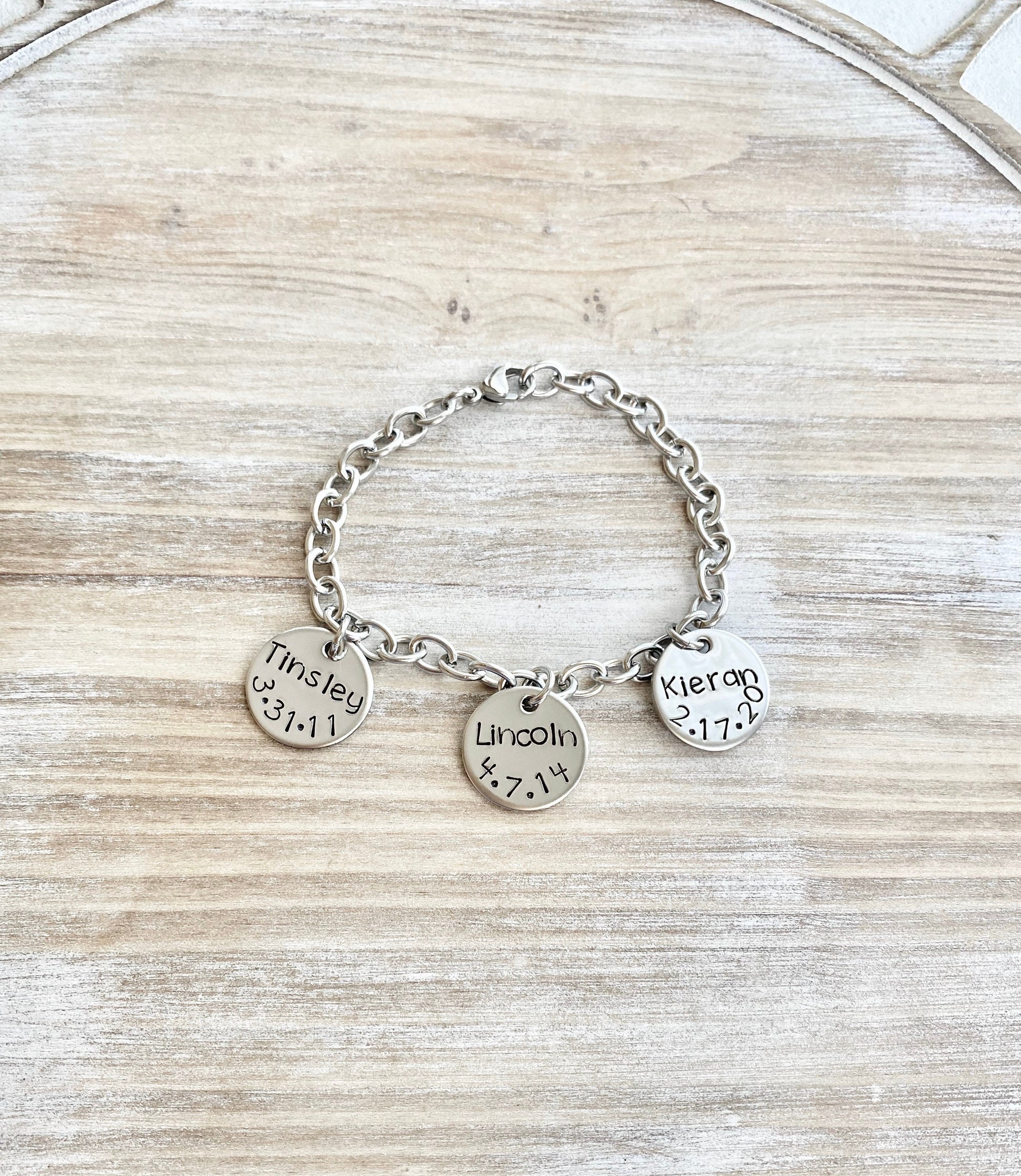 Mother Charm Bracelet Grandma Charm Bracelet Grandchildren Name Bracelet Handstamped Bracelet Personalized Bracelet Handstamped Jewelry