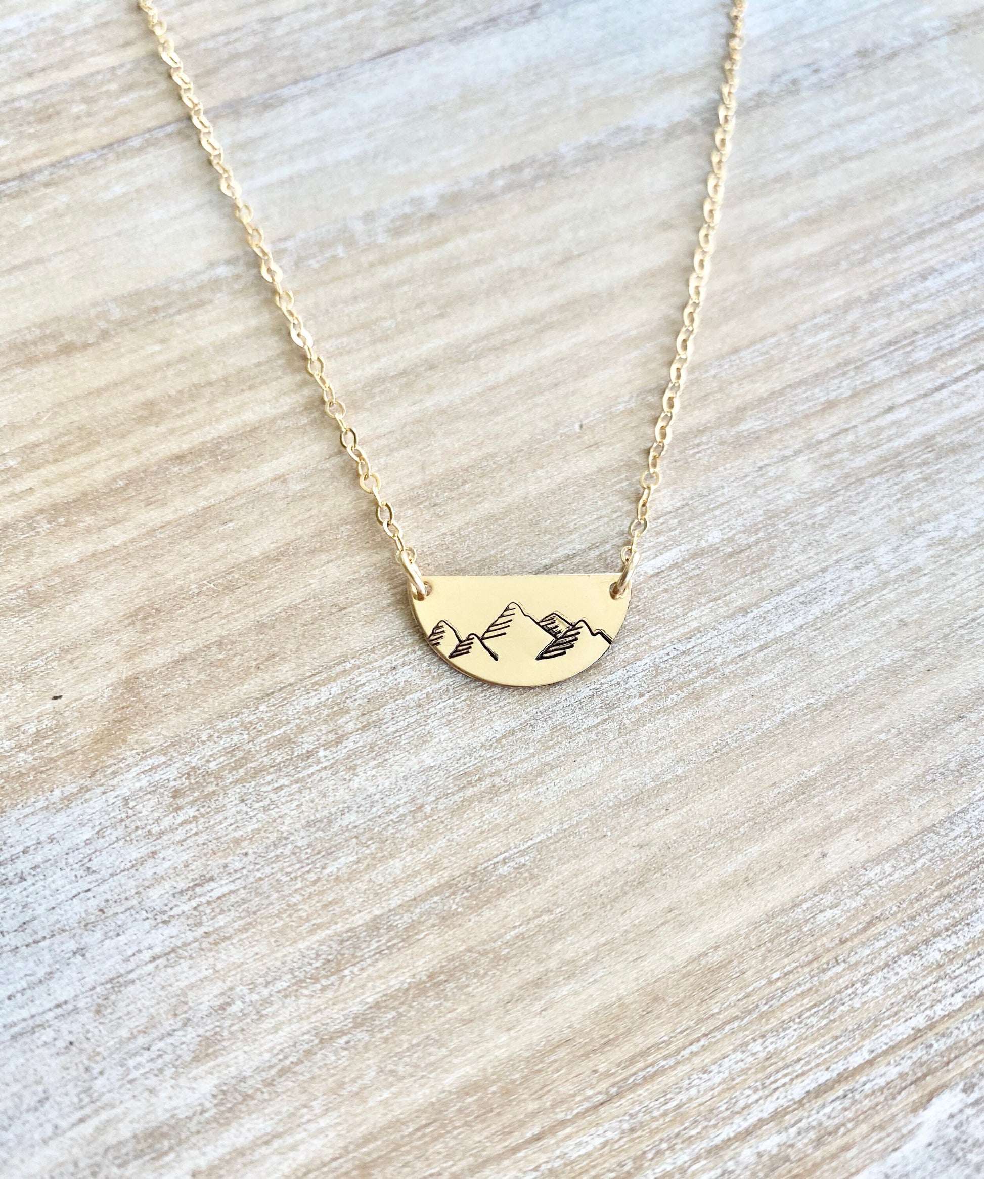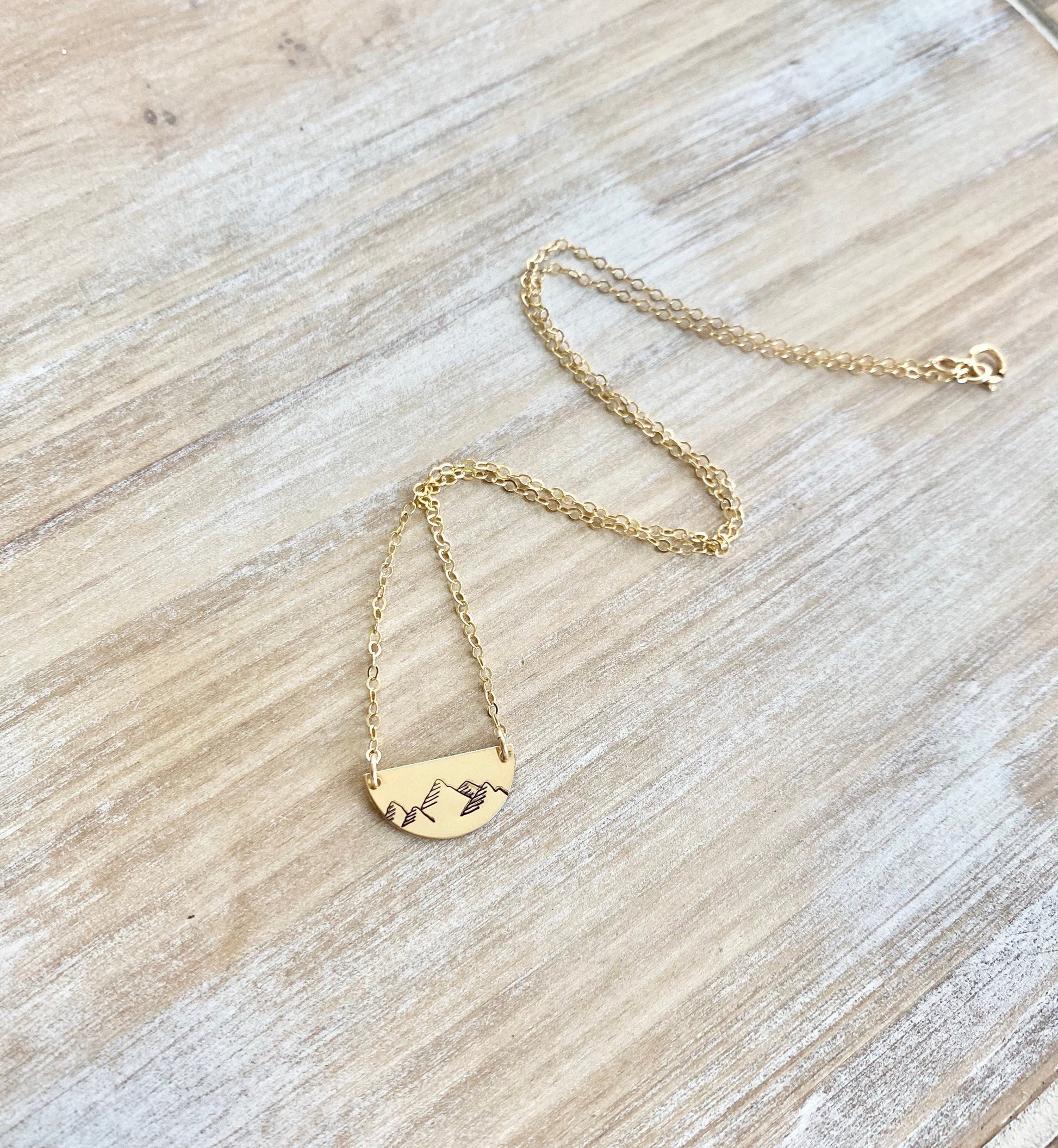 Mountain Necklace Gift for her Gold Filled Necklace for Woman Outdoor Wanderlust Jewelry Gold Half Moon Necklace