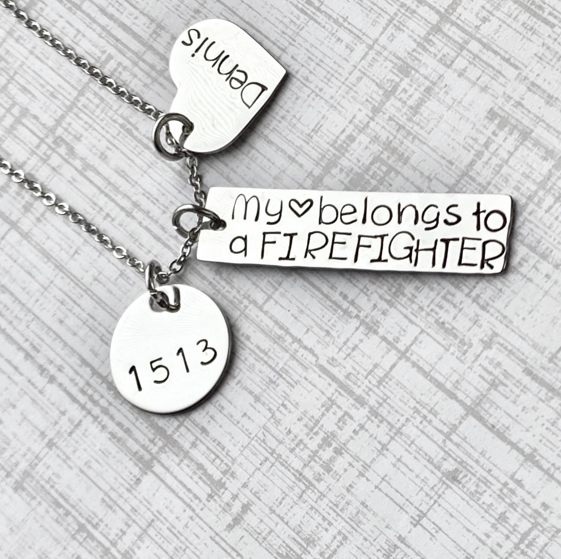 My Heart Belongs to a Firefighter Wife Necklace Firefighter Wife Necklace Handstamped Jewelry Custom Necklace Heart necklace