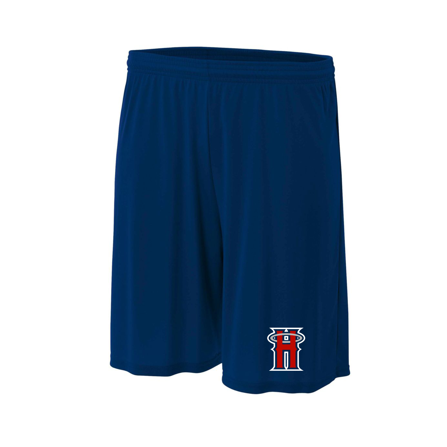 Navy Hutto Angels Training Shorts, Navy H Baseball Shorts, Mens Running Shorts