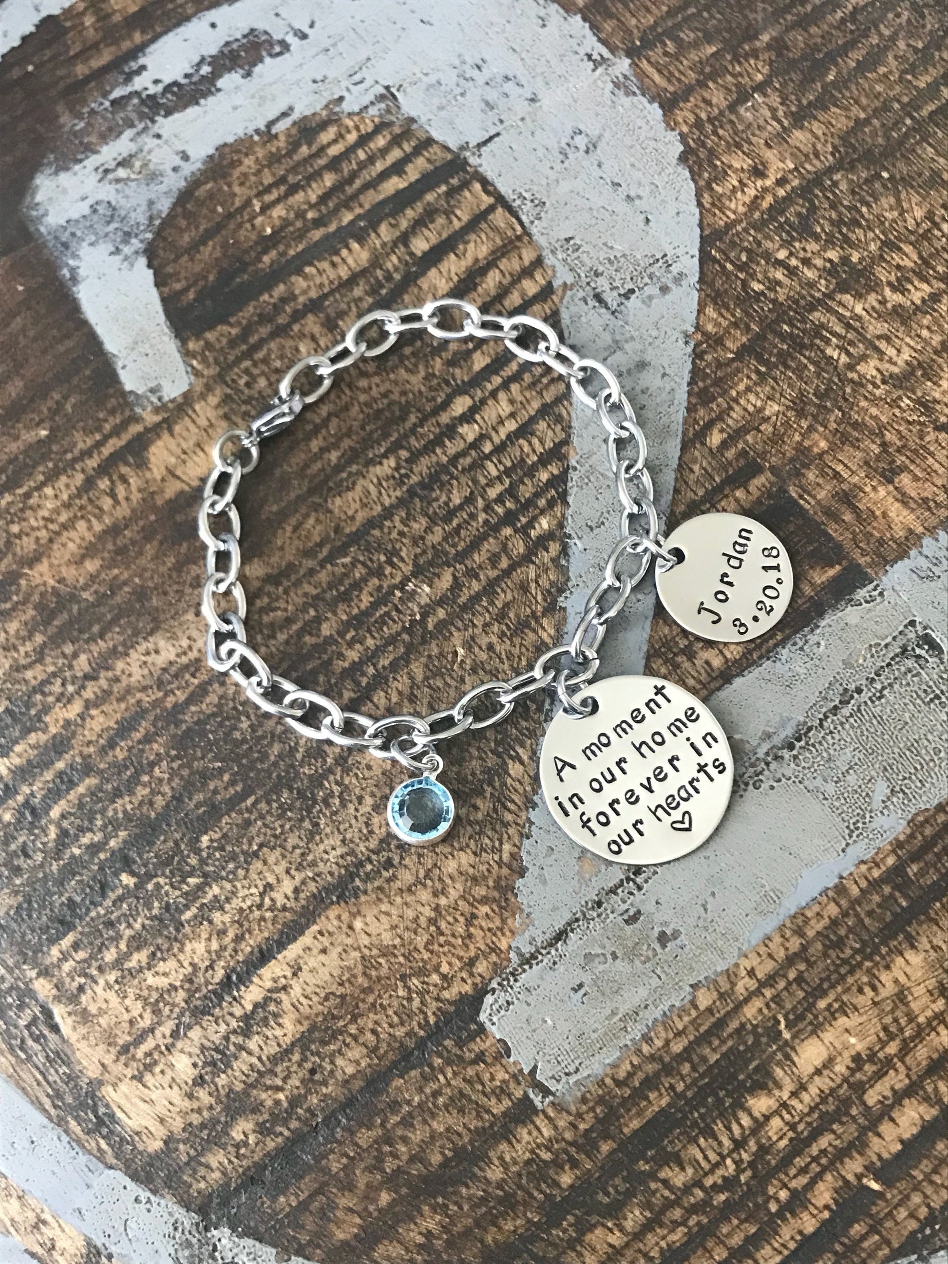 *1" Stainless Steel disc stamped with "A moment in my home forever in my heart"