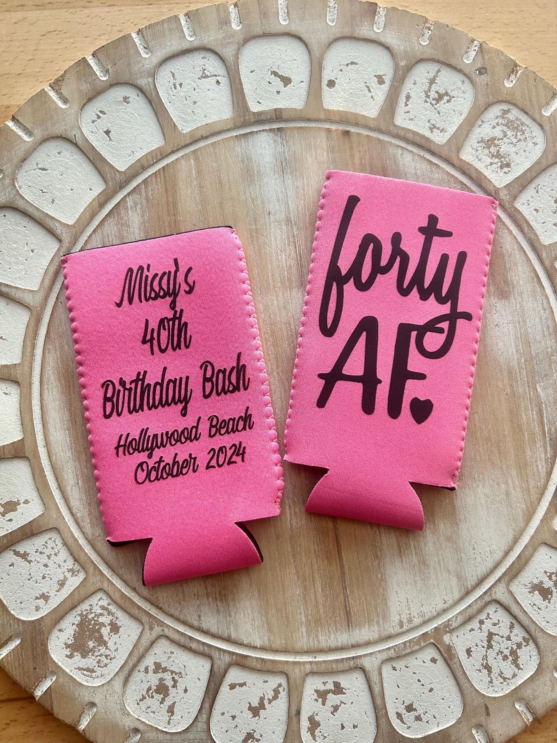 Personalized 40th Birthday Can Coolers: 'Forty AF' Party Favors