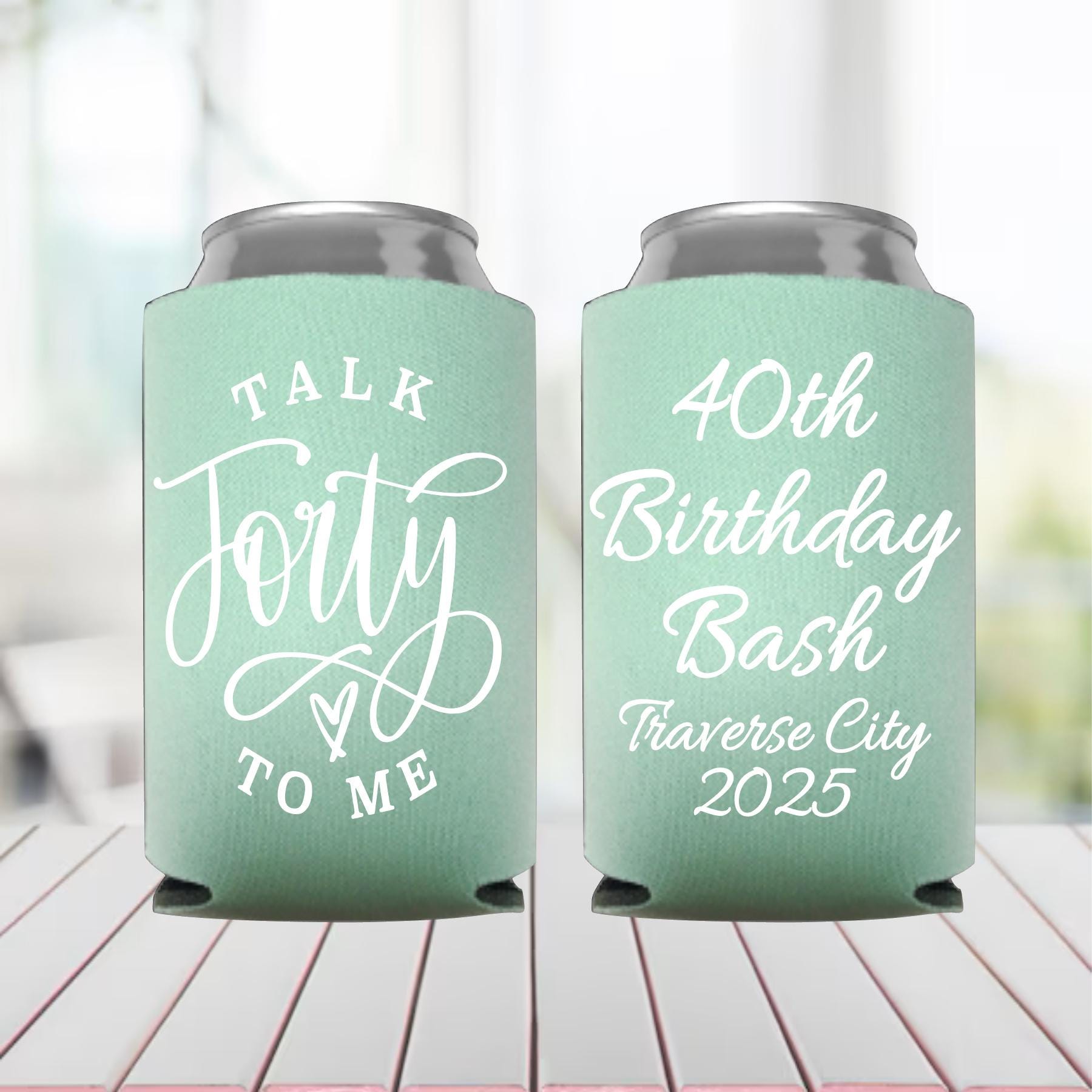 Talk 40 to Me, 40th Birthday Can Coolers, 40 and Fabulous, Cheers to 40 Years Birthday Party, Can Coolers for 40th Birthday Favor Birthday