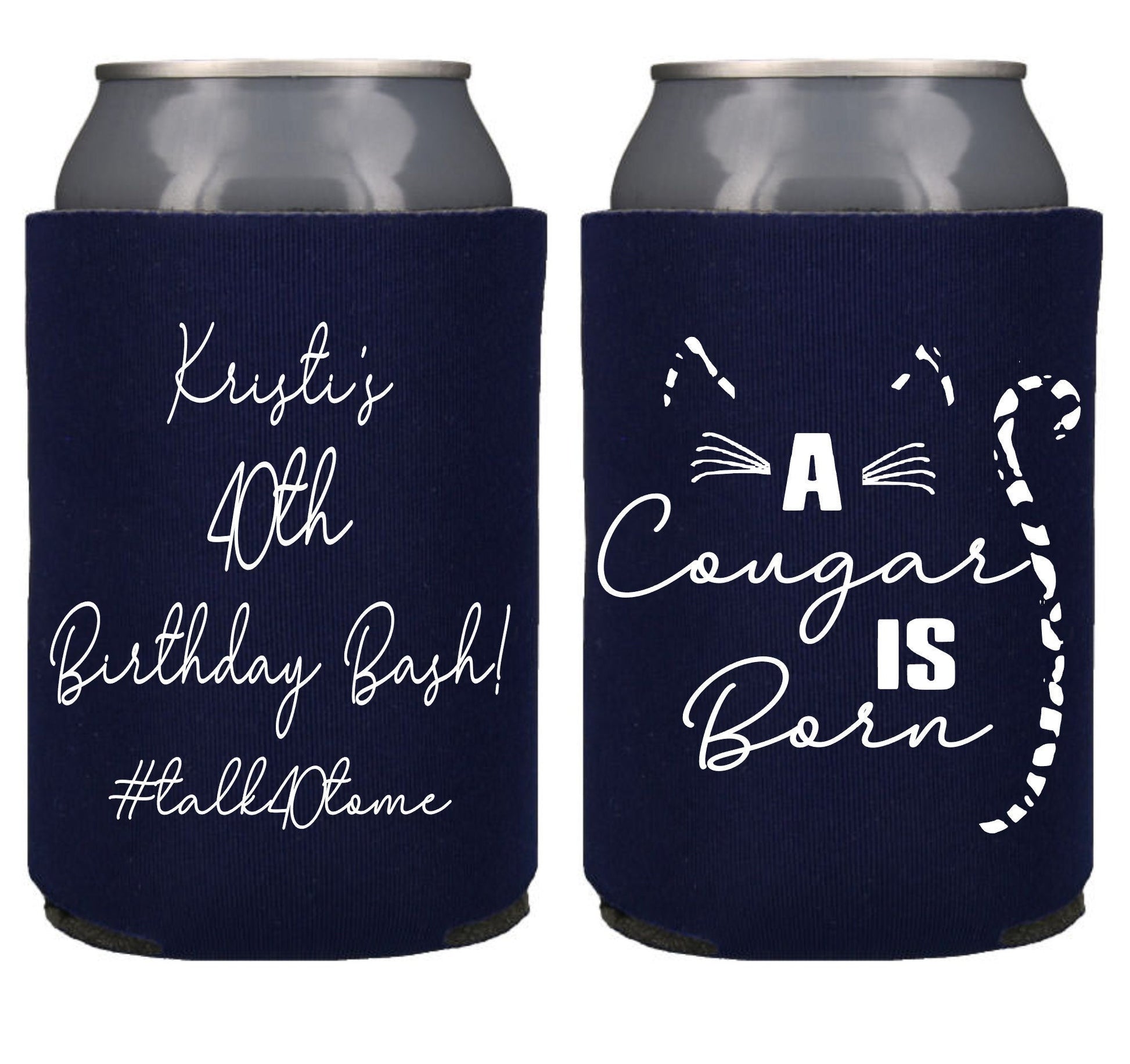 Personalized 'A Cougar is Born' Can Coolers: 40th Birthday Party Favors