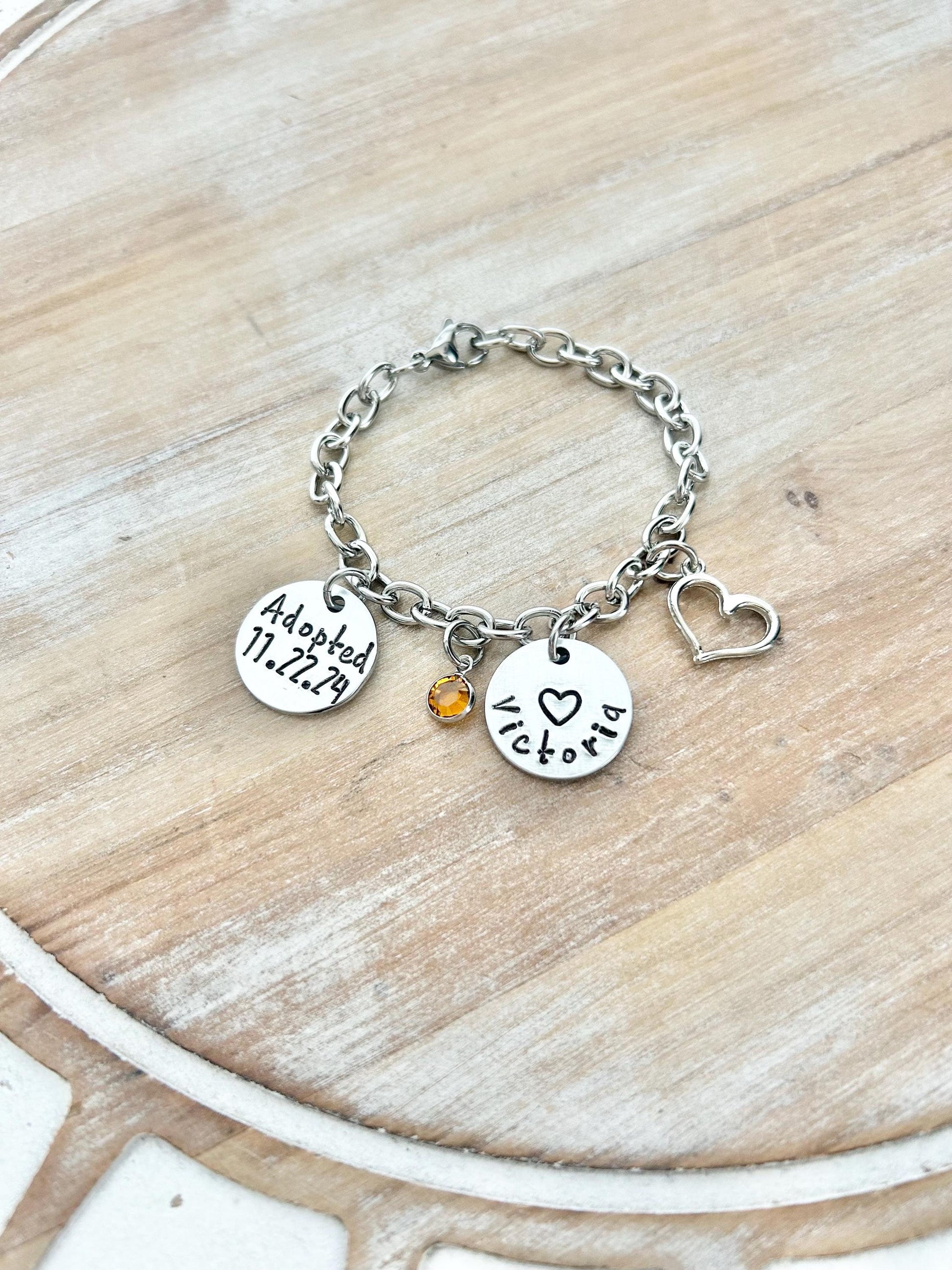 Each bracelet is handmade and personalized just for you. Choose your name, date, and crystal to create a one-of-a-kind adoption gift that will be treasured forever.