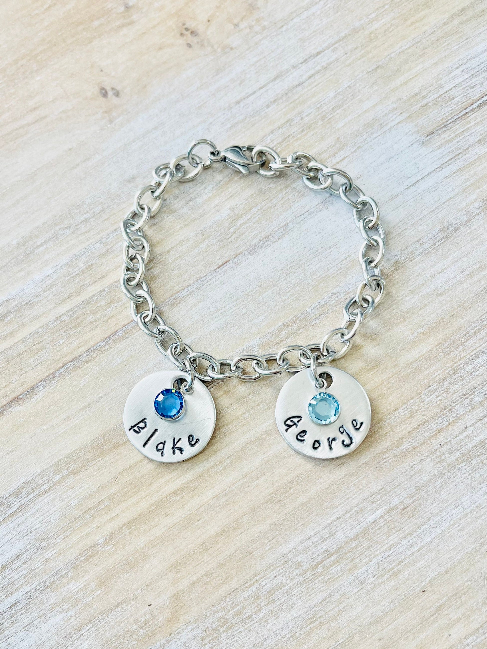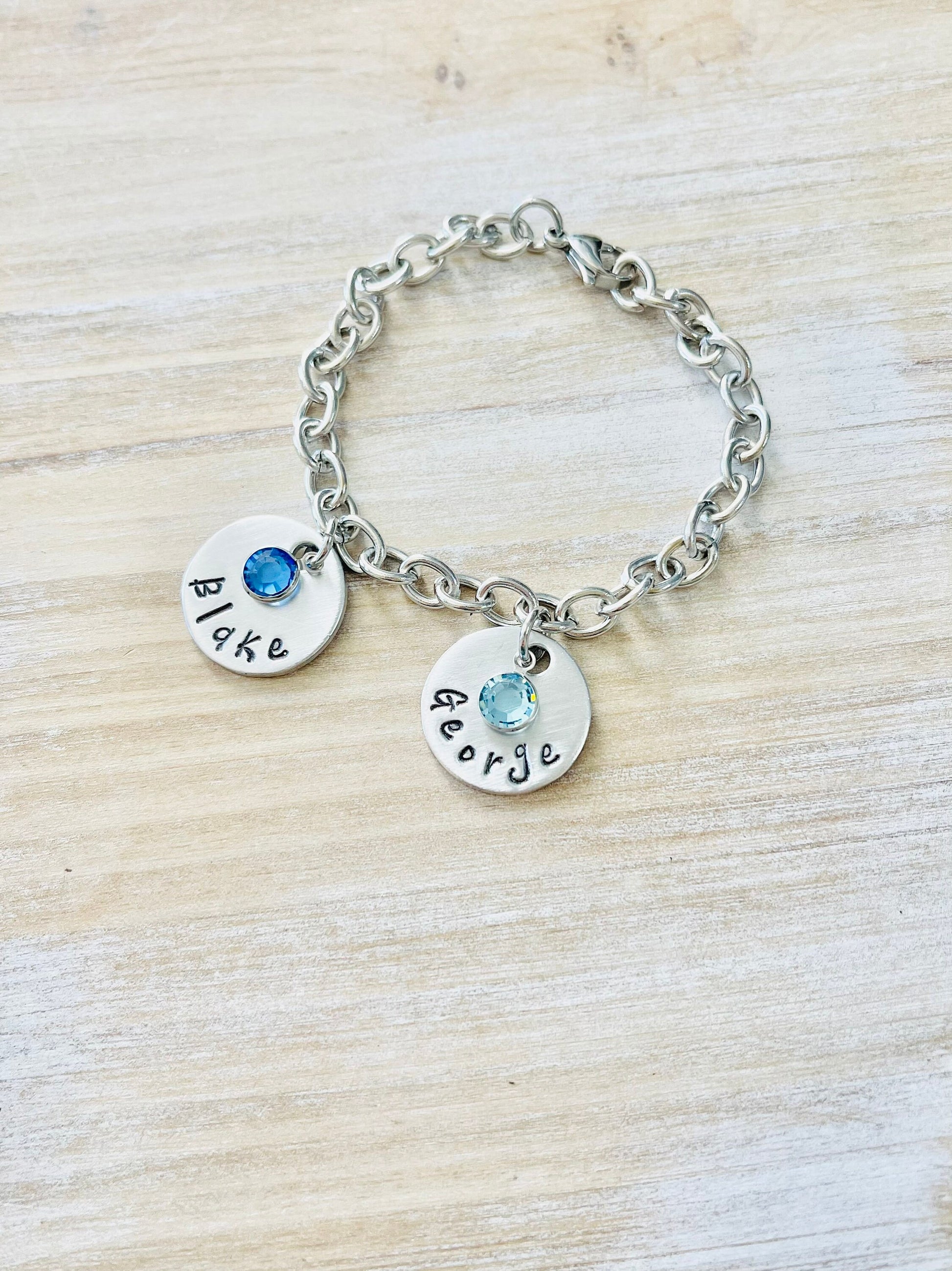 Personalized Charm Bracelet Grandma Bracelet Grandchild Bracelet Handstamped Jewelry Mom Charm Bracelet Grandma Gift Mothers Day Gift