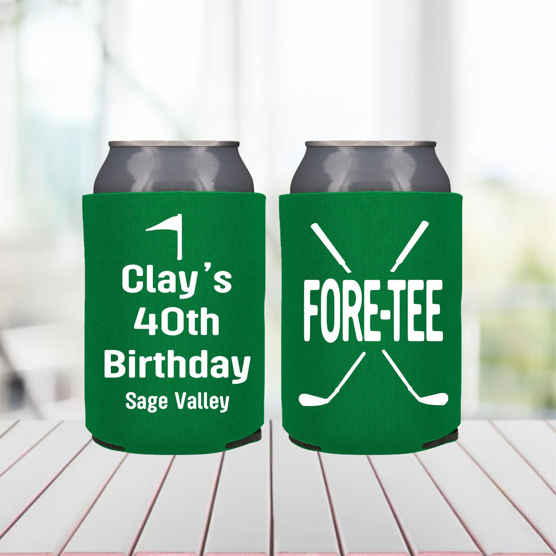 Personalized Golf 40th Birthday Can Cooler: Fore-Tee Party Favor
