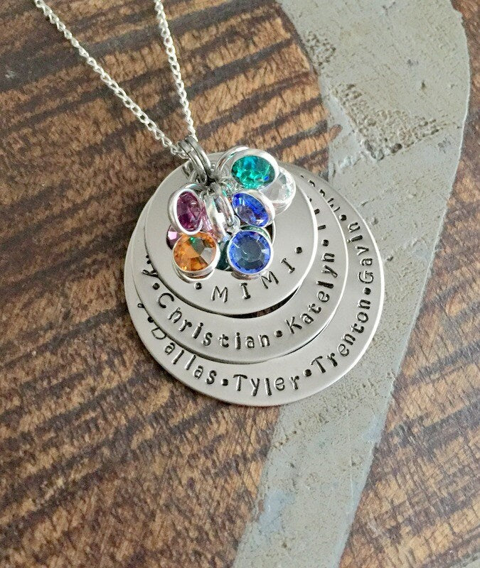 Personalized Necklace Mothers Day Gift Customized Washer Necklace Birthstone Necklace Mimi Necklace Handstamped Necklace Mom Necklace