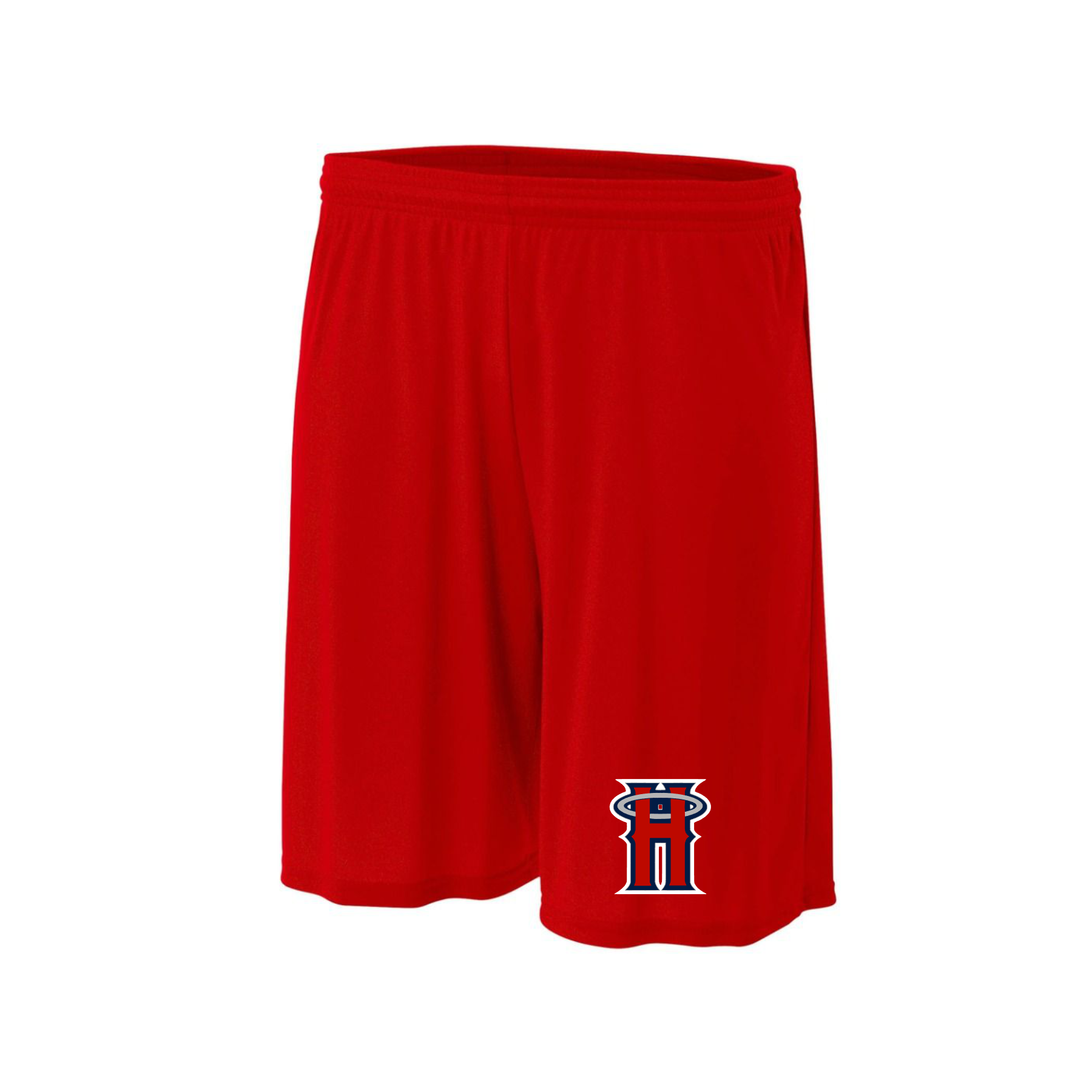 Red Hutto Angels Training Shorts, Red H Baseball Shorts, Mens Running Shorts