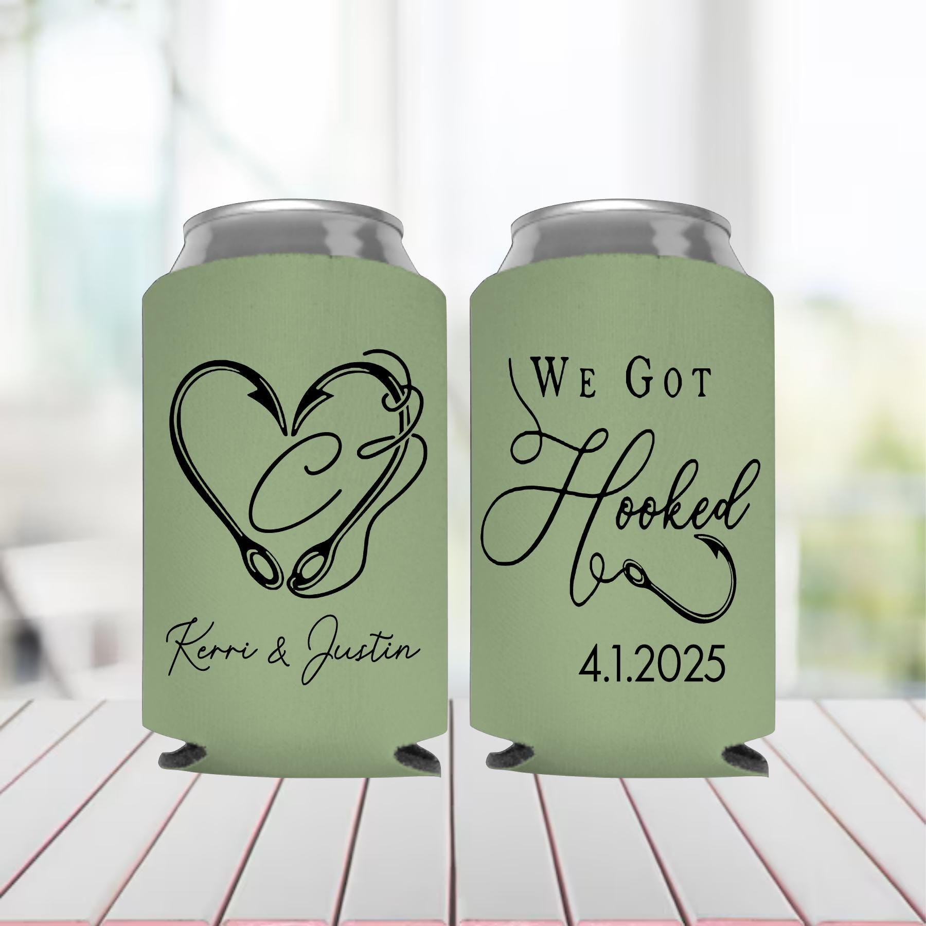 We Got Hooked Can Coolers: Fishing Wedding Favors, Beach Party Beer Holders