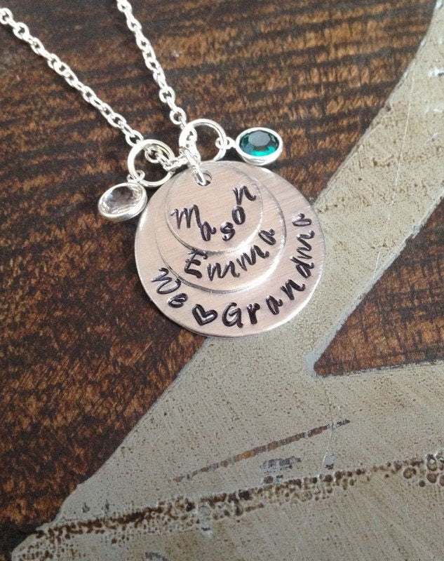 We love Grandma Grandma Necklace Grandchild Necklace Personalized Necklace Personalized Jewelry Handstamped Necklace Birthstone Necklace