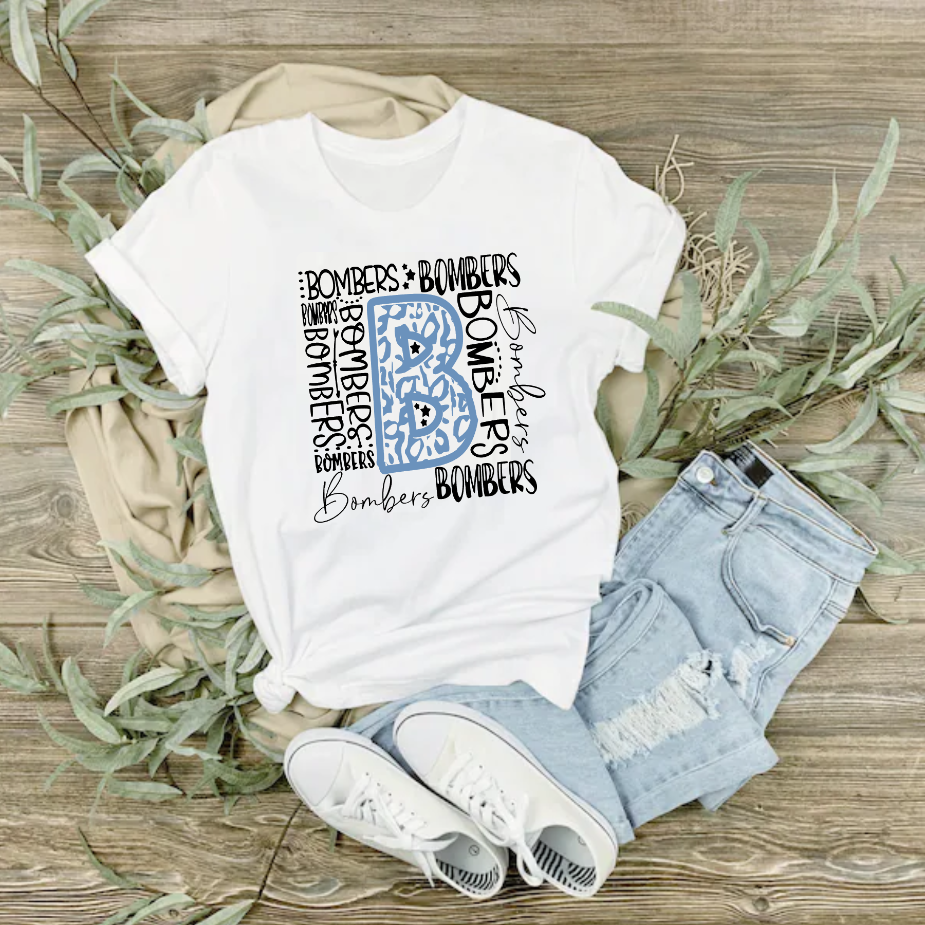 White Bella and Canvas Bombers Tshirt, Georgetown Bombers Tee, Bombers Script Tee