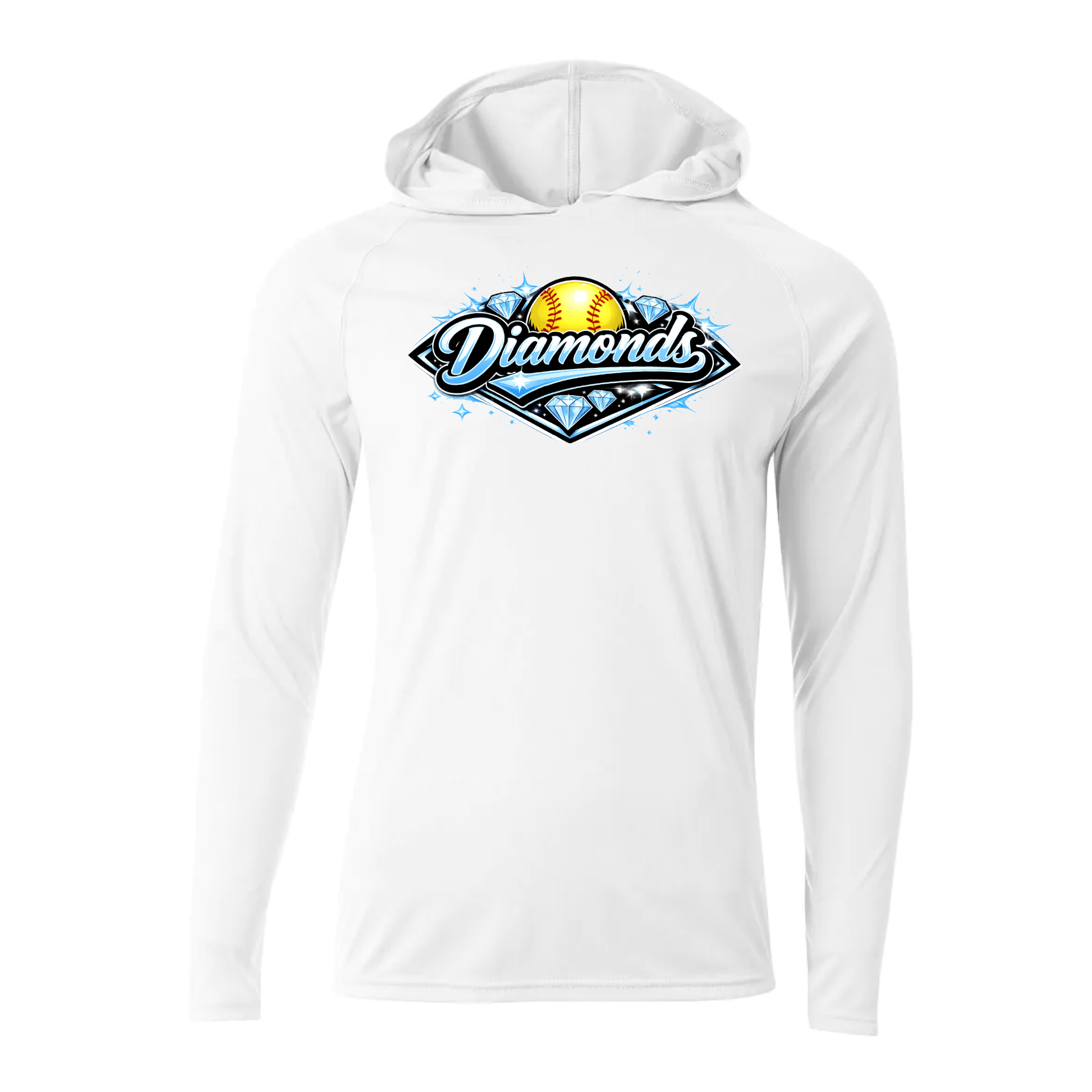 White Diamonds Softball Long Sleeve Hooded Shirt | Team Hooded Tee