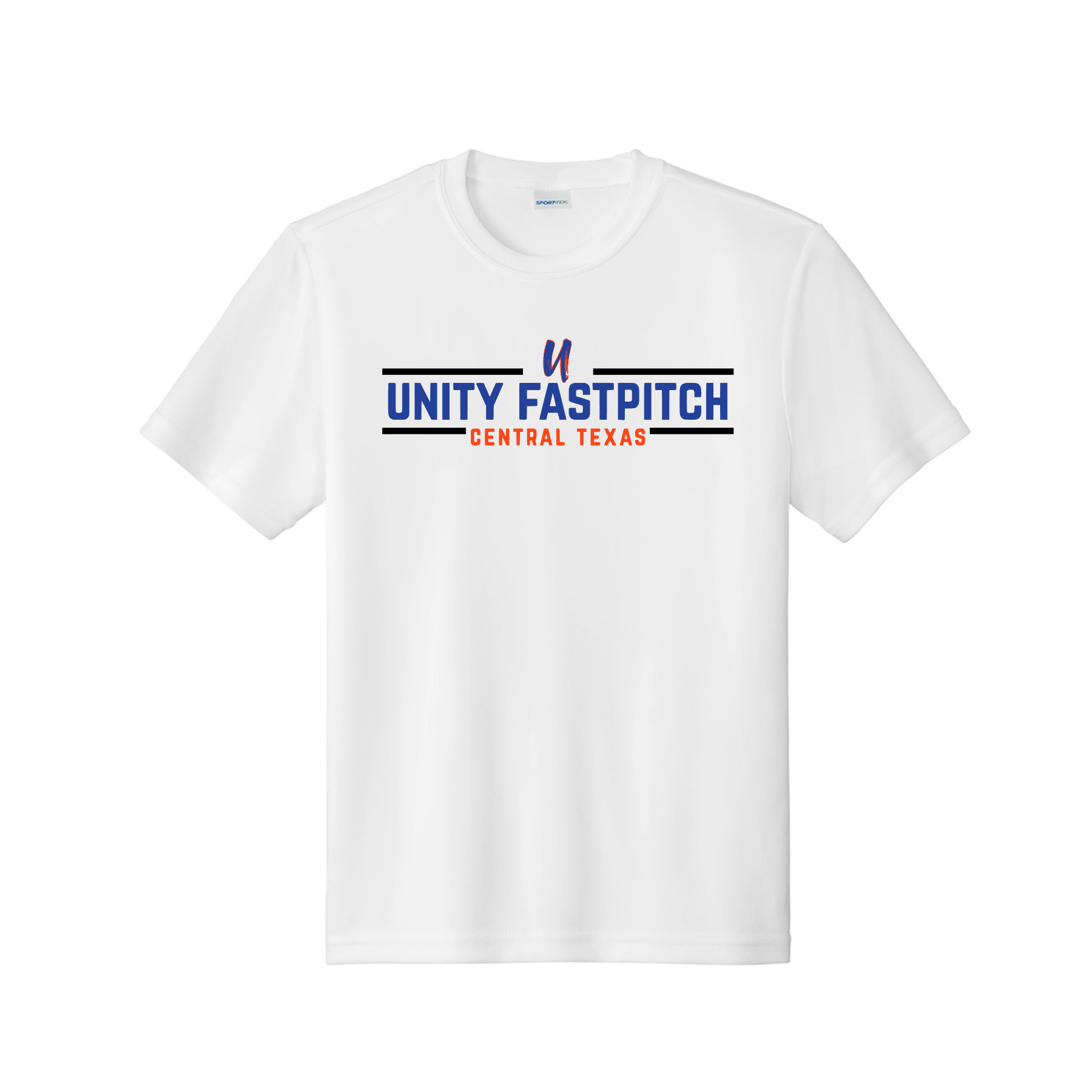 White DriFit Unity Fastpitch Shirt – Unity Fastpitch Central Texas Logo | Performance Softball Training Tee