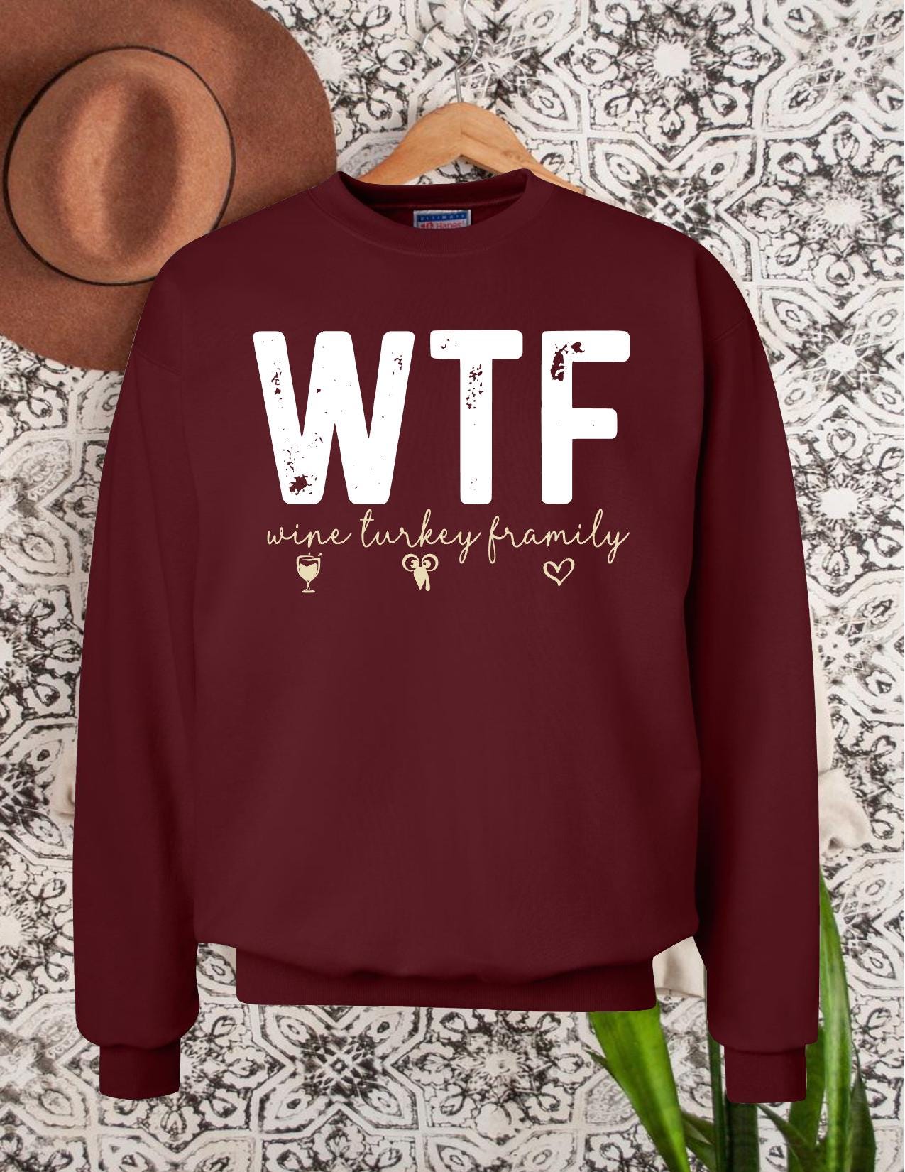 WTF Wine Turkey Framily Sweatshirt - Funny Thanksgiving Gift